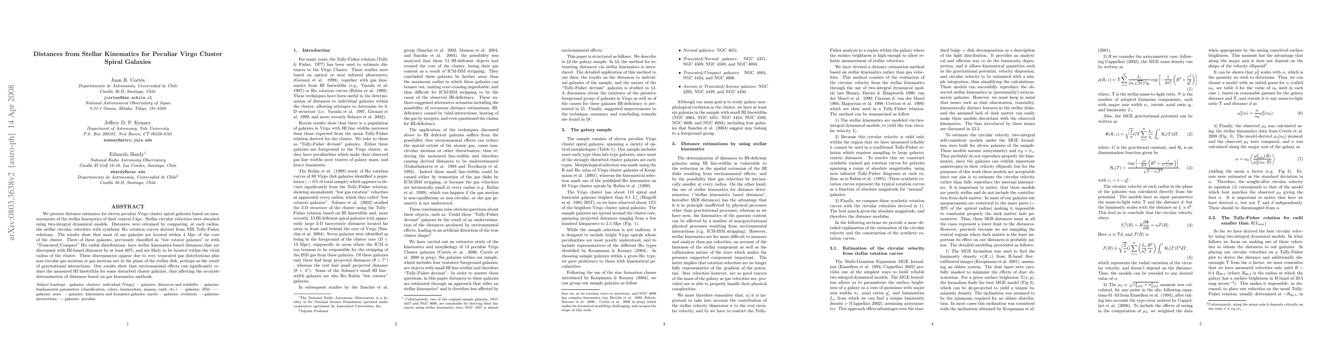 This paper estimates distances for eleven peculiar Virgo cluster spiral galaxies using stellar kinematics, finding most within 4 Mpc of the cluster core. It highlights discrepancies in distances derived from HI kinematics, likely due to environmental effects causing truncated gas distributions and non-circular gas motions.