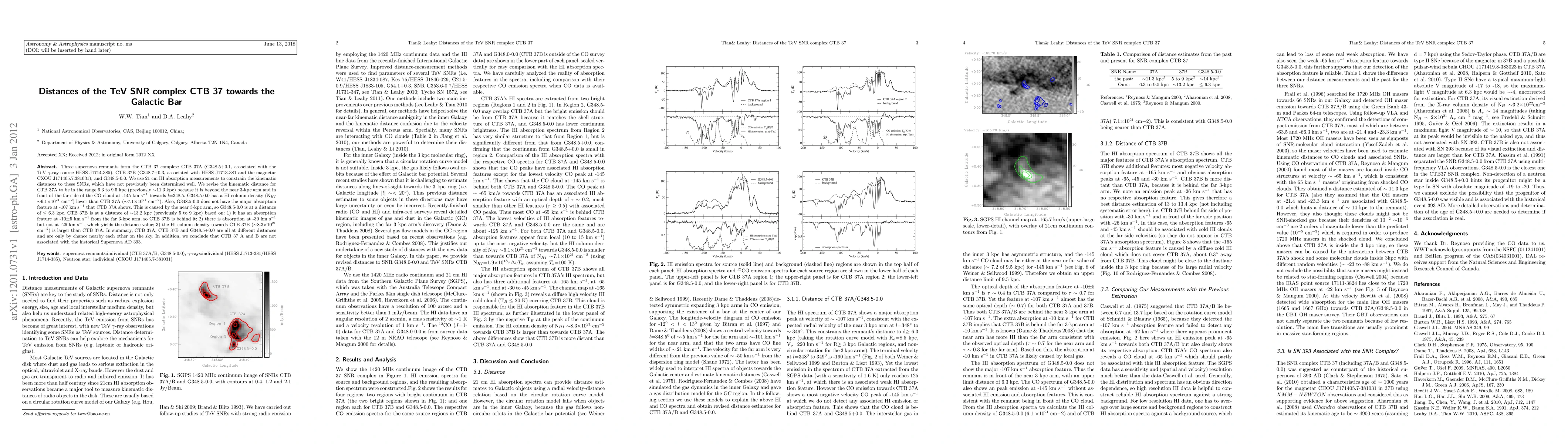 Three supernova remnants form the CTB 37 complex: CTB 37A (G348.5+0.1, associated with the TeV $\gamma$-ray source HESS J1714-385), CTB 37B (G348.7+0.3, associated with HESS J1713-381 and the magnetar CXOU J171405.7.381031), and G348.5-0.0. We use 21 cm HI absorption measurements to constrain the kinematic distances to these SNRs, which have not previously been determined well. We revise the kinematic distance for CTB 37A to be in the range 6.3 to 9.5 kpc (previously $\sim$11.3 kpc) because it is beyond the near 3-kpc arm and in front of the far side of the CO cloud at -145 km s$^{-1}$ towards $l$=348.5. G348.5-0.0 has a HI column density (N$_{HI}$ $\sim6.1\times10^{21}$ cm$^{-2}$) lower than CTB 37A ($\sim7.1\time10^{21}$ cm$^{-2}$). Also, G348.5-0.0 does not have the major absorption feature at -107 km s$^{-1}$ that CTB 37A shows. This is caused by the near 3-kpc arm, so G348.5-0.0 is at a distance of $\le$ 6.3 kpc. CTB 37B is at a distance of $\sim$13.2 kpc (previously 5 to 9 kpc) based on: 1) it has an absorption feature at -10$\pm$5 km s$^{-1}$ from the far 3-kpc arm, so CTB 37B is behind it; 2) there is absorption at -30 km s$^{-1}$ but not at -26 km s$^{-1}$, which yields the distance value; 3) the HI column density towards CTB 37B ($\sim8.3\times10^{21}$ cm$^{-2}$) is larger than CTB 37A. In summary, CTB 37A, CTB 37B and G348.5+0.0 are all at different distances and are only by chance nearby each other on the sky. In addition, we conclude that CTB 37 A and B are not associated with the historical Supernova AD 393.
