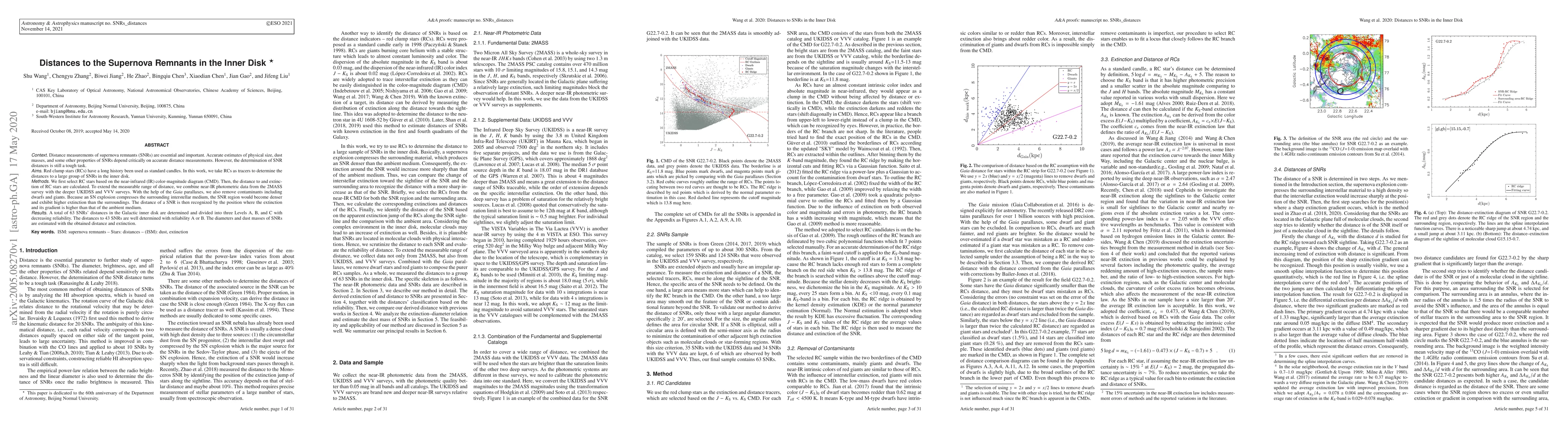 Distance measurements of supernova remnants (SNRs) are essential and important. Accurate estimates of physical size, dust masses, and some other properties of SNRs depend critically on accurate distance measurements. However, the determination of SNR distances is still a tough task. Red clump stars (RCs) have a long history been used as standard candles. In this work, we take RCs as tracers to determine the distances to a large group of SNRs in the inner disk. We first select RC stars based on the near-infrared (IR) color-magnitude diagram (CMD). Then, the distance to and extinction of RC stars are calculated. To extend the measurable range of distance, we combine near-IR photometric data from the 2MASS survey with the deeper UKIDSS and VVV surveys. With the help of the Gaia parallaxes, we also remove contaminants including dwarfs and giants. Because an SN explosion compresses the surrounding interstellar medium, the SNR region would become denser and exhibit higher extinction than the surroundings. The distance of a SNR is then recognized by the position where the extinction and its gradient is higher than that of the ambient medium. A total of 63 SNRs' distances in the Galactic inner disk are determined and divided into three Levels A, B, and C with decreasing reliability. The distances to 43 SNRs are well determined with reliability A or B. The diameters and dust masses of SNRs are estimated with the obtained distance and extinction.