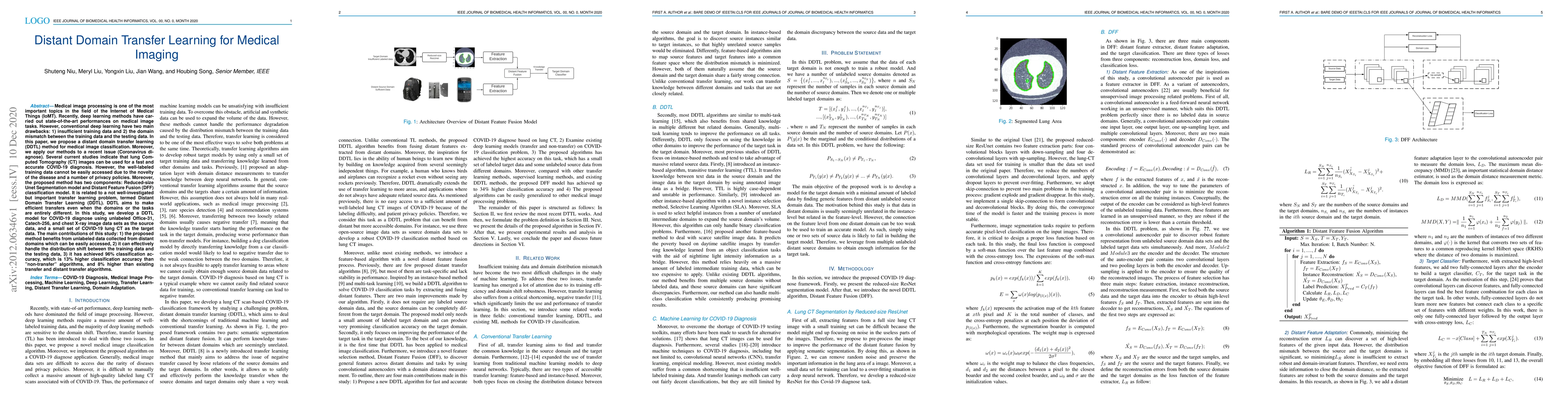 This paper proposes a Distant Domain Transfer Learning (DDTL) method to address the challenges of insufficient training data and domain mismatch in medical image classification, particularly for COVID-19 diagnosis using lung CT images. The method combines a Reduced-size Unet Segmentation model and a Distant Feature Fusion (DFF) classification model, achieving 96% classification accuracy, outperforming non-transfer and existing transfer learning algorithms.