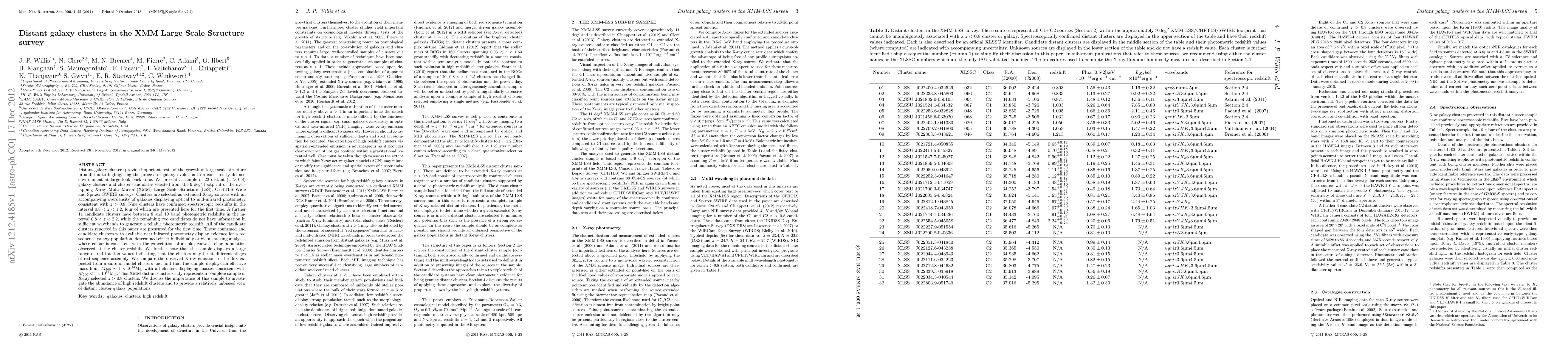This paper presents a sample of 22 distant galaxy clusters (z>0.8) identified from XMM, CFHTLS, and Spitzer surveys, highlighting their evolution and large-scale structure growth. The clusters show evidence of an old stellar population and an effective mass limit of ~1e14 Msolar.