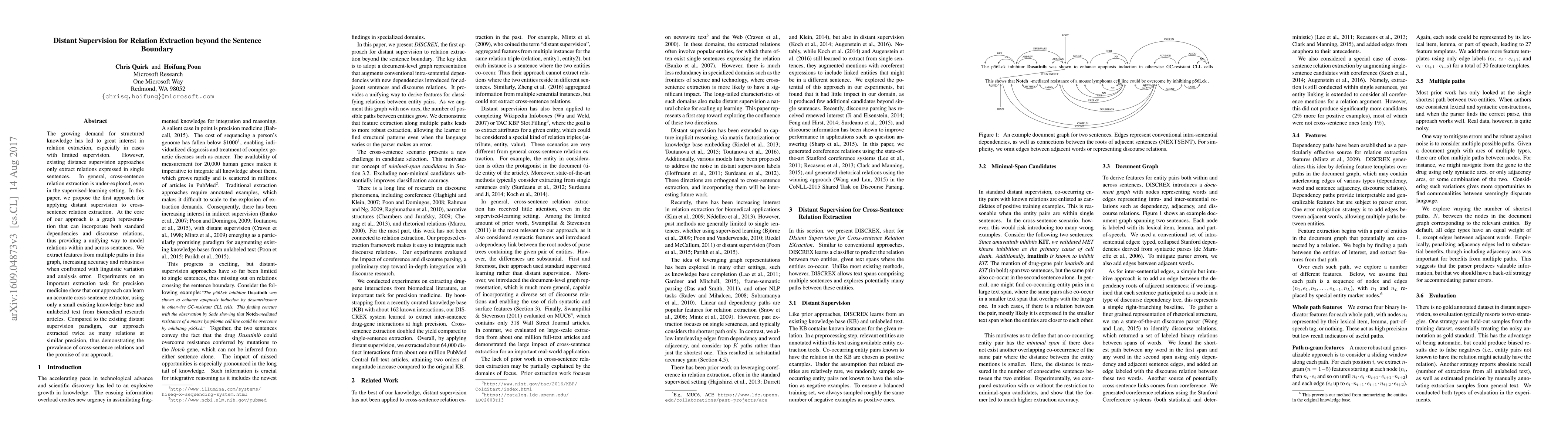 This paper introduces a novel distant supervision method for extracting relations across sentences, using a graph representation that incorporates both standard dependencies and discourse relations. The proposed approach extracts features from multiple paths in the graph, achieving higher accuracy and robustness, and demonstrates significant improvements in relation extraction for precision medicine tasks compared to existing distant supervision methods.