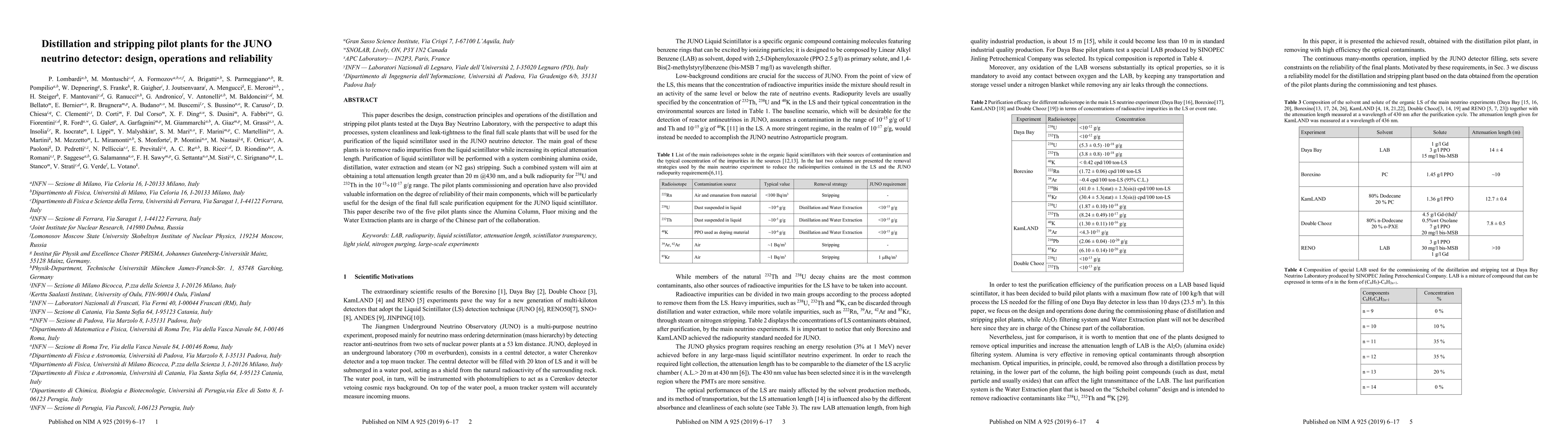 This paper details the design and operation of distillation and stripping pilot plants used at the Daya Bay Neutrino Laboratory to purify liquid scintillator for the JUNO neutrino detector, focusing on removing radio impurities and achieving a high optical attenuation length. The pilot plants provided insights into system reliability, aiding the design of full-scale purification equipment.
