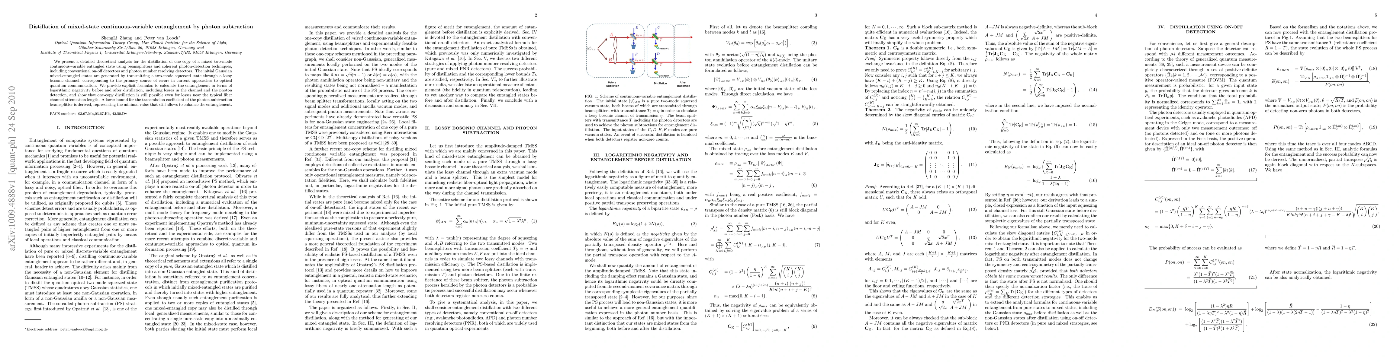 This paper presents a theoretical analysis of distilling one copy of mixed-state continuous-variable entanglement using photon subtraction and beamsplitters, with explicit formulas for calculating entanglement before and after distillation. The study shows that entanglement can still be enhanced despite significant losses, providing a lower bound for the necessary transmission coefficient.