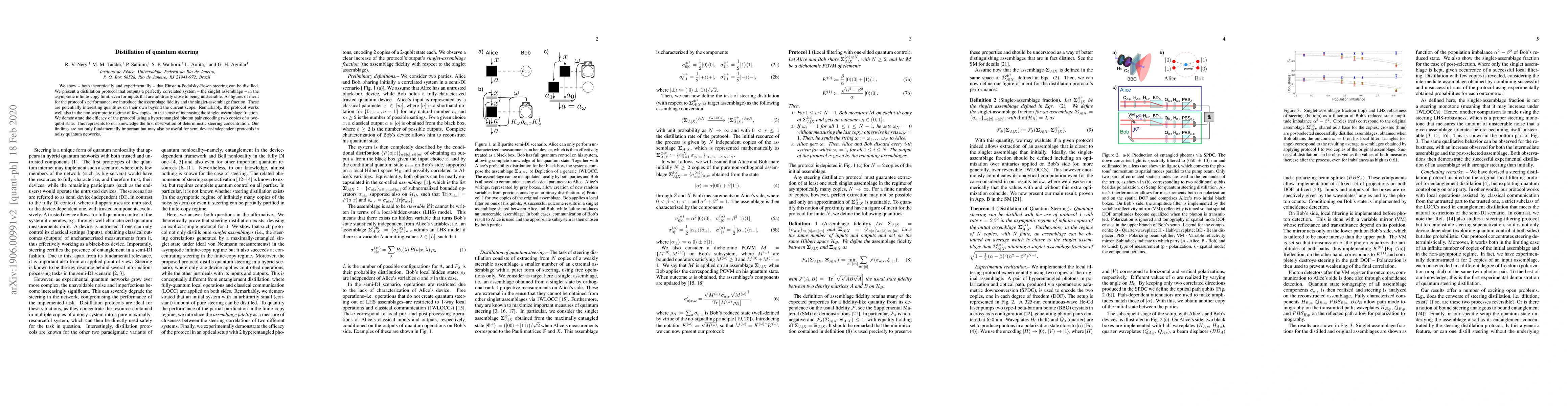 We show -- both theoretically and experimentally -- that Einstein-Podolsky-Rosen steering can be distilled. We present a distillation protocol that outputs a perfectly correlated system -- the singlet assemblage -- in the asymptotic infinite-copy limit, even for inputs that are arbitrarily close to being unsteerable. As figures of merit for the protocol's performance, we introduce the assemblage fidelity and the singlet-assemblage fraction. These are potentially interesting quantities on their own beyond the current scope. Remarkably, the protocol works well also in the non-asymptotic regime of few copies, in the sense of increasing the singlet-assemblage fraction. We demonstrate the efficacy of the protocol using a hyperentangled photon pair encoding two copies of a two-qubit state. This represents to our knowledge the first observation of deterministic steering concentration. Our findings are not only fundamentally important but may also be useful for semi device-independent protocols in noisy quantum networks.