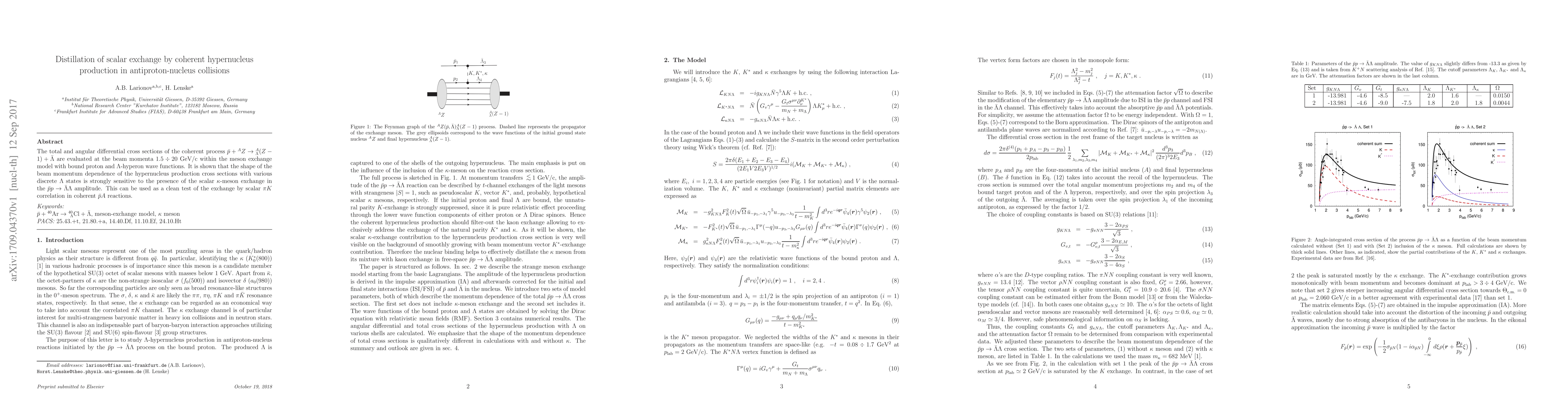 The total and angular differential cross sections of the coherent process $\bar p + {}^AZ \to {}^A_\Lambda(Z-1) + \bar{\Lambda}$ are evaluated at the beam momenta $1.5\div20$ GeV/c within the meson exchange model with bound proton and $\Lambda$-hyperon wave functions. It is shown that the shape of the beam momentum dependence of the hypernucleus production cross sections with various discrete $\Lambda$ states is strongly sensitive to the presence of the scalar $\kappa$-meson exchange in the $\bar p p \to \bar\Lambda \Lambda$ amplitude. This can be used as a clean test of the exchange by scalar $\pi K$ correlation in coherent $\bar p A$ reactions.