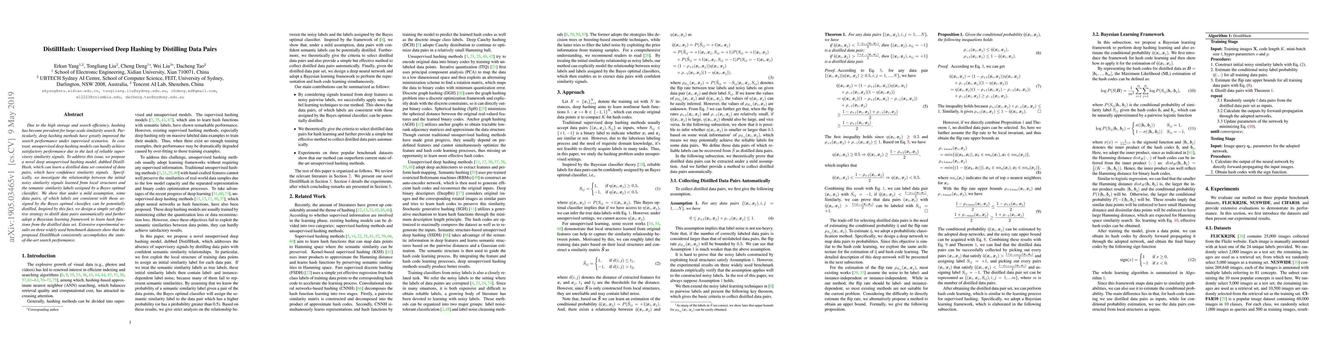 DistillHash proposes an unsupervised deep hashing model that distills data pairs with confidence similarity signals from local structures to achieve state-of-the-art performance in large-scale similarity search, outperforming supervised methods. The method leverages a Bayesian learning framework to learn hash functions from the distilled data pairs.