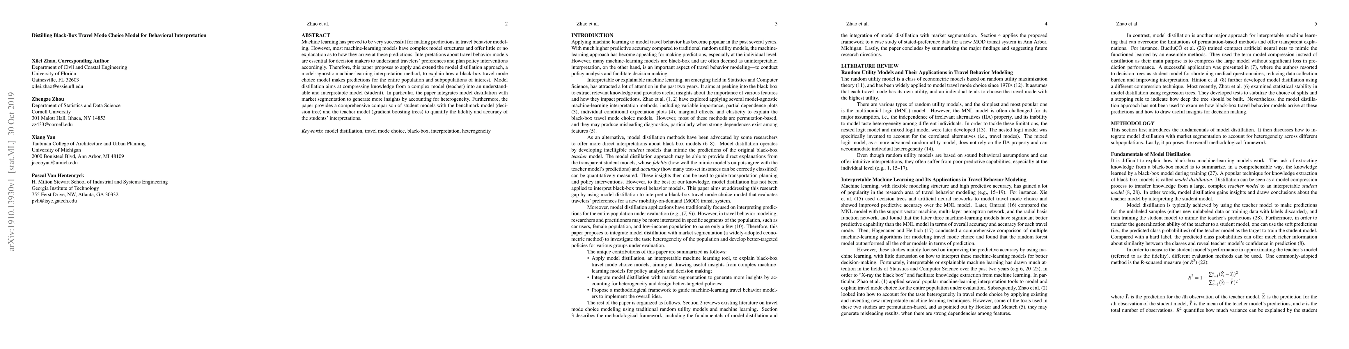 This paper uses a model distillation approach to explain how a black-box travel mode choice model makes predictions, providing insights into travelers' preferences for policy interventions. It compares the fidelity and accuracy of student models with benchmark models.