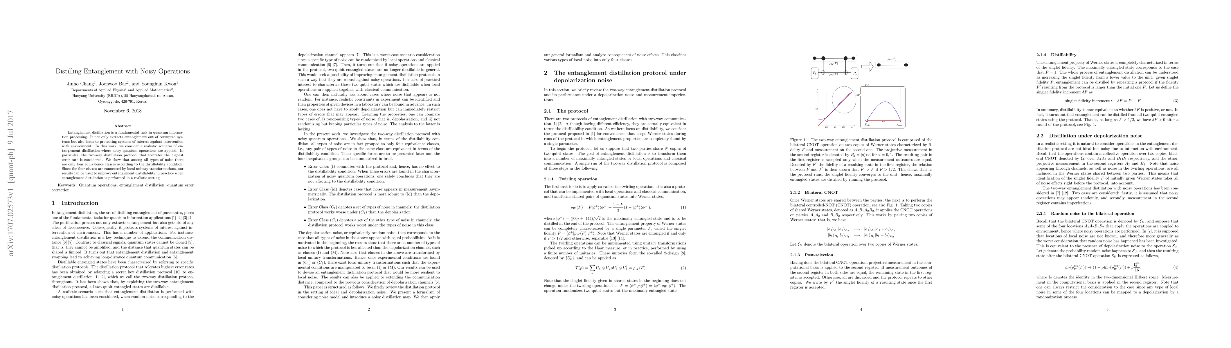This work provides a novel approach to entanglement distillation in noisy quantum operations, improving the robustness and fidelity of distilled entangled states