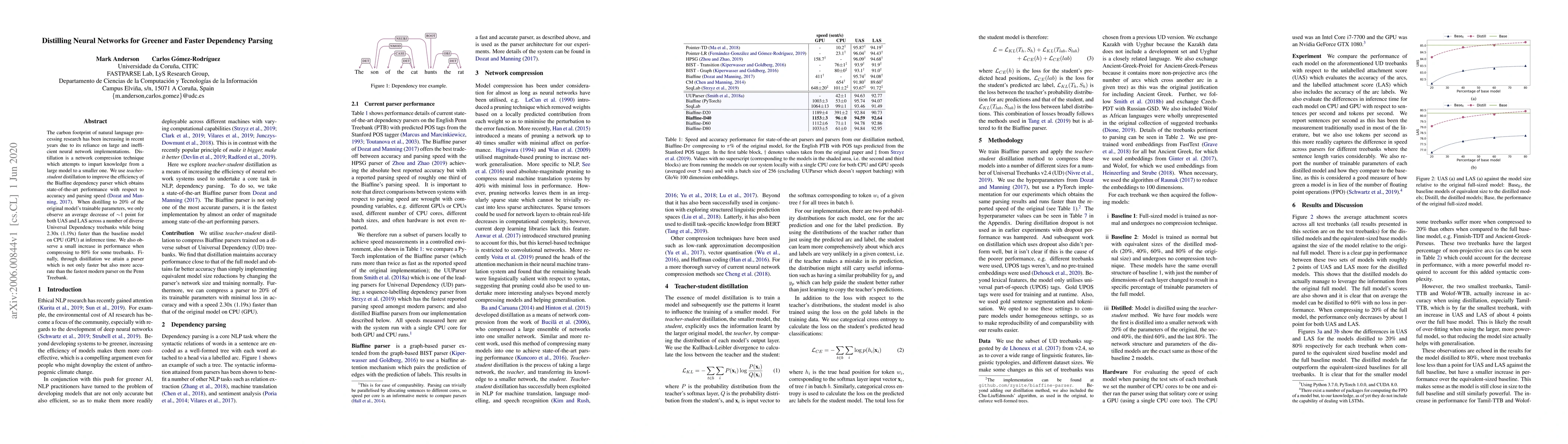 Researchers used network distillation to improve a dependency parser, reducing its size by up to 80% while maintaining accuracy, and achieving significant speed gains.