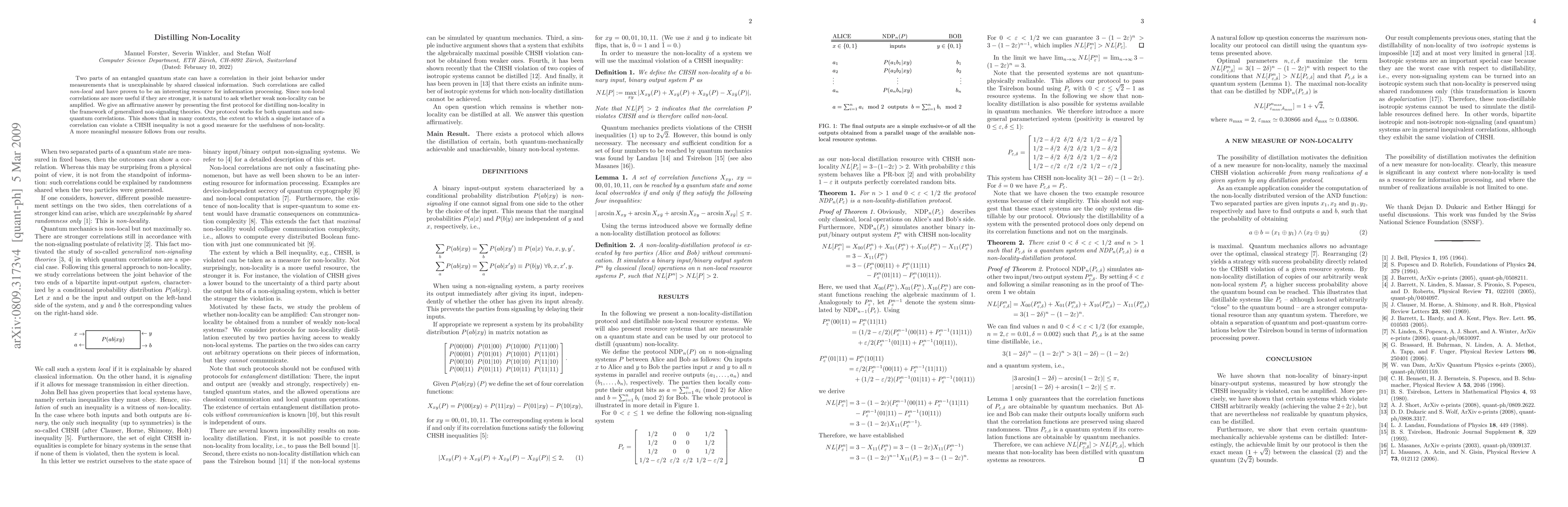 This paper presents the first protocol for distilling non-locality, showing that weak non-local correlations can be amplified, applicable to both quantum and non-quantum systems. It argues that the ability to distill non-locality provides a more meaningful measure of non-locality's usefulness than individual CHSH inequality violations.