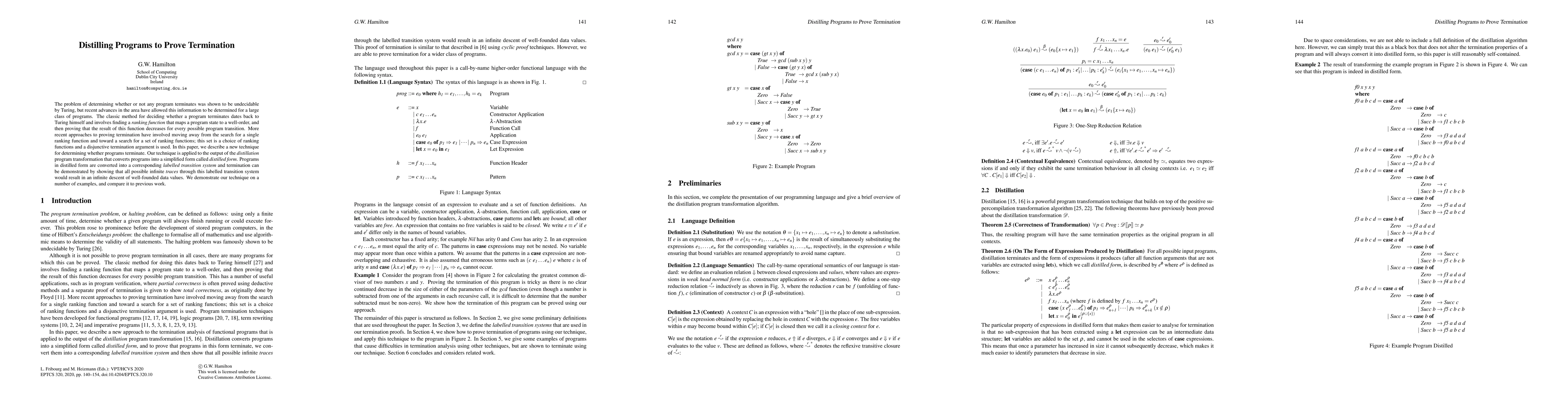 The problem of determining whether or not any program terminates was shown to be undecidable by Turing, but recent advances in the area have allowed this information to be determined for a large class of programs. The classic method for deciding whether a program terminates dates back to Turing himself and involves finding a ranking function that maps a program state to a well-order, and then proving that the result of this function decreases for every possible program transition. More recent approaches to proving termination have involved moving away from the search for a single ranking function and toward a search for a set of ranking functions; this set is a choice of ranking functions and a disjunctive termination argument is used. In this paper, we describe a new technique for determining whether programs terminate. Our technique is applied to the output of the distillation program transformation that converts programs into a simplified form called distilled form. Programs in distilled form are converted into a corresponding labelled transition system and termination can be demonstrated by showing that all possible infinite traces through this labelled transition system would result in an infinite descent of well-founded data values. We demonstrate our technique on a number of examples, and compare it to previous work.