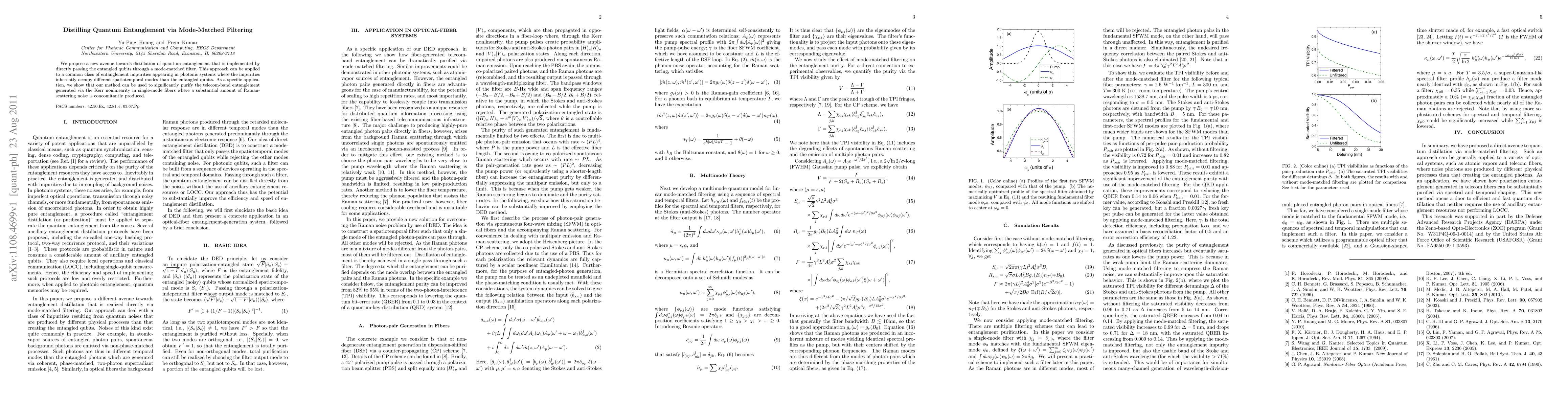 Researchers propose a new method to purify quantum entanglement using mode-matched filtering, which can effectively remove impurities in photonic systems, leading to improved telecom-band entanglement quality.