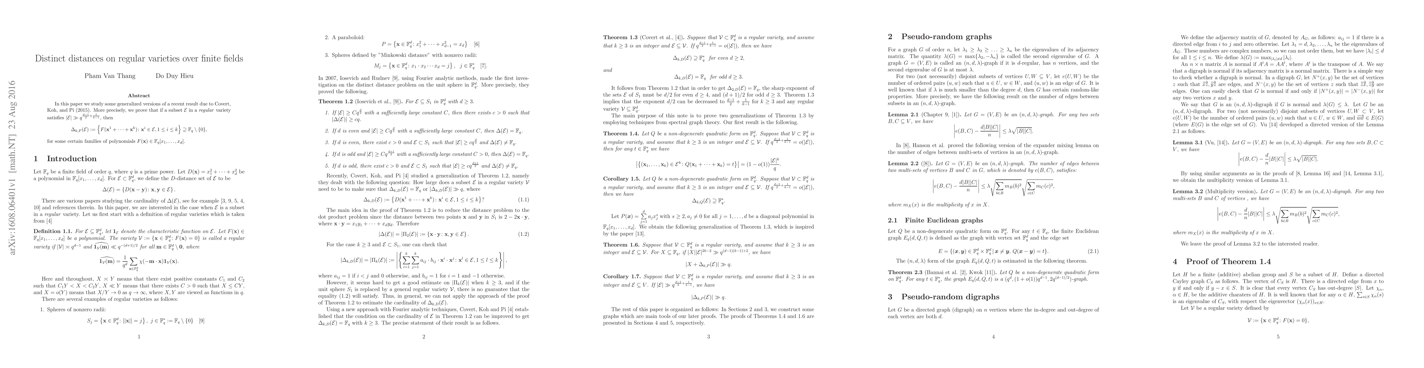 In this paper we study some generalized versions of a recent result due to Covert, Koh, and Pi (2015). More precisely, we prove that if a subset $\mathcal{E}$ in a regular variety satisfies $|\mathcal{E}|\gg q^{\frac{d-1}{2}+\frac{1}{k-1}}$, then $\Delta_{k, F}(\mathcal{E})\supseteq \mathbb{F}_q\setminus \{0\}$ for some certain families of polynomials $F(\mathbf{x})\in \mathbb{F}_q[x_1, \ldots, x_d]$.