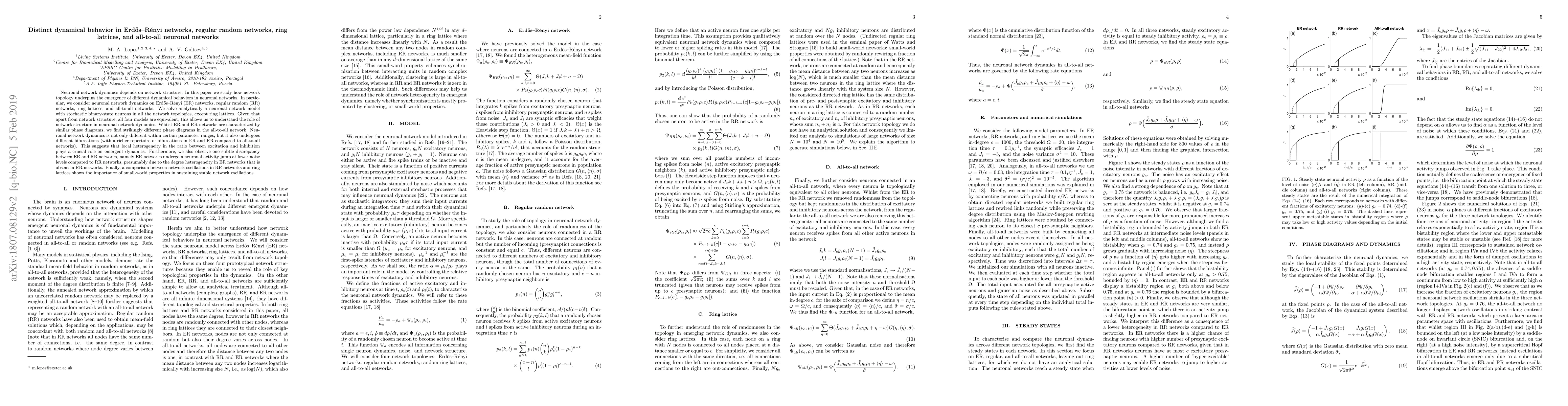Neuronal network dynamics depends on network structure. In this paper we study how network topology underpins the emergence of different dynamical behaviors in neuronal networks. In particular, we consider neuronal network dynamics on Erd\H{o}s-R\'enyi (ER) networks, regular random (RR) networks, ring lattices, and all-to-all networks. We solve analytically a neuronal network model with stochastic binary-state neurons in all the network topologies, except ring lattices. Given that apart from network structure, all four models are equivalent, this allows us to understand the role of network structure in neuronal network dynamics. Whilst ER and RR networks are characterized by similar phase diagrams, we find strikingly different phase diagrams in the all-to-all network. Neuronal network dynamics is not only different within certain parameter ranges, but it also undergoes different bifurcations (with a richer repertoire of bifurcations in ER and RR compared to all-to-all networks). This suggests that local heterogeneity in the ratio between excitation and inhibition plays a crucial role on emergent dynamics. Furthermore, we also observe one subtle discrepancy between ER and RR networks, namely ER networks undergo a neuronal activity jump at lower noise levels compared to RR networks, presumably due to the degree heterogeneity in ER networks that is absent in RR networks. Finally, a comparison between network oscillations in RR networks and ring lattices shows the importance of small-world properties in sustaining stable network oscillations.