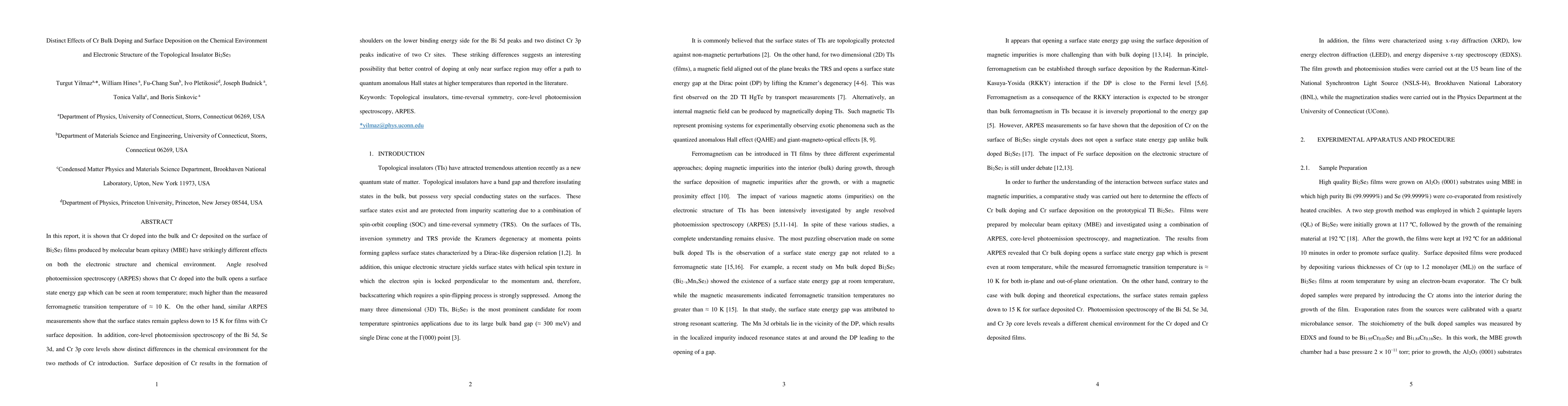 The study highlights the differences in Cr's impact on Bi2Se3 when introduced through bulk doping versus surface deposition.