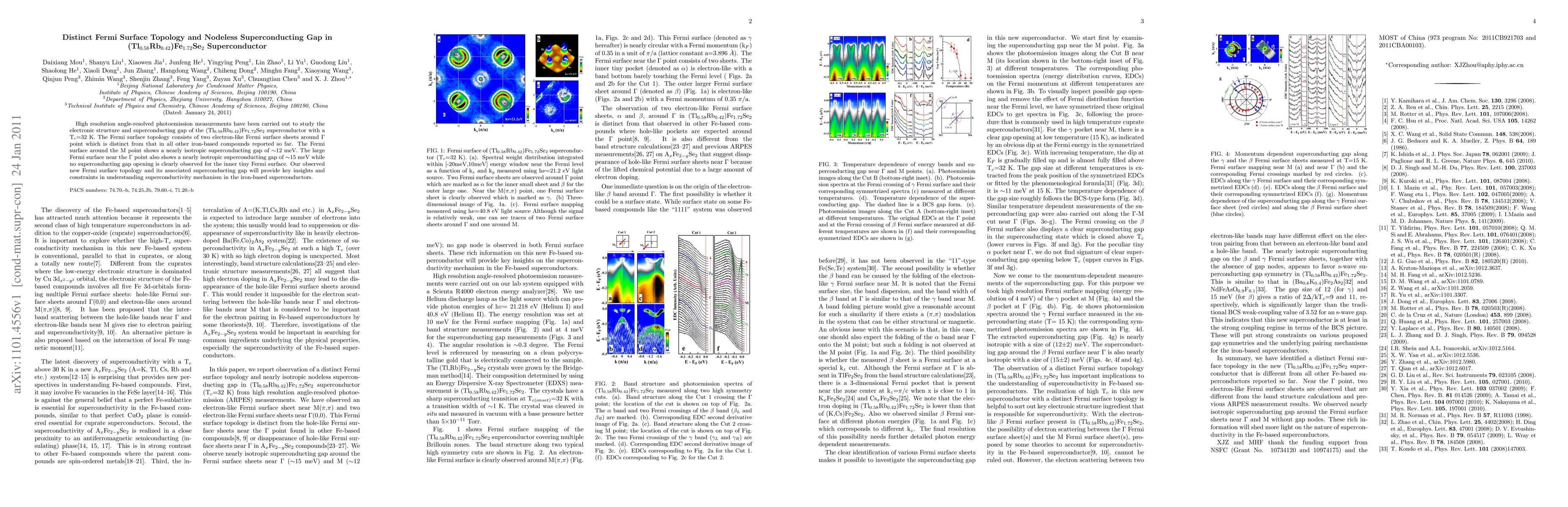 Researchers discovered a new Fermi surface topology in (Tl0.58Rb0.42)Fe1.72Se2 superconductor with a Tc of 32 K, featuring two electron-like sheets around the ε point and nearly isotropic gaps of up to 15 meV.