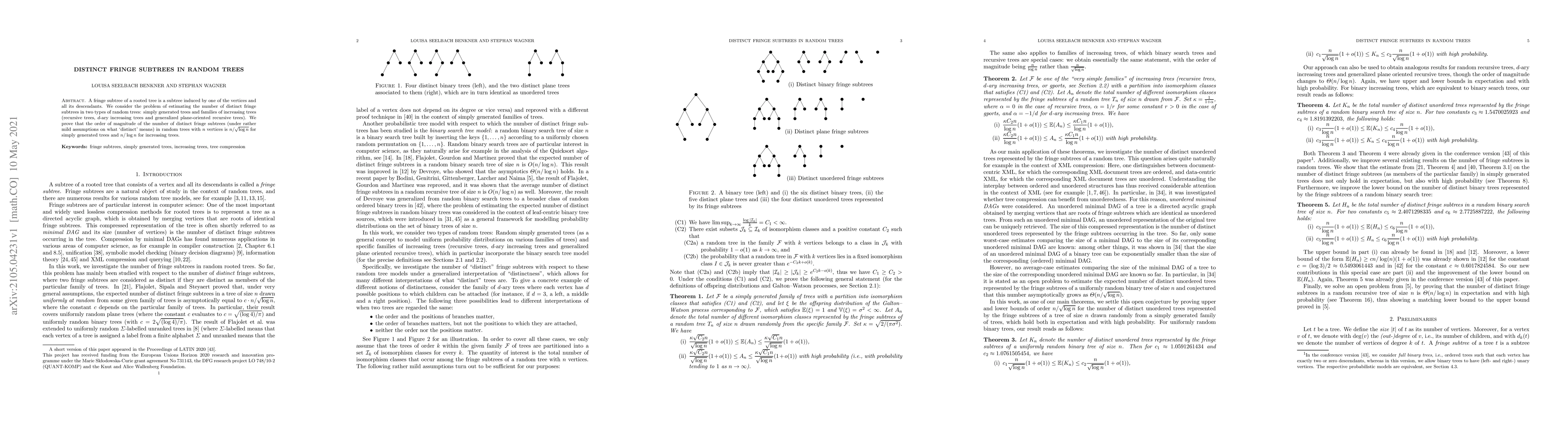 This research estimates the number of distinct fringe subtrees in two types of random trees, finding that simply generated trees have around $n/\sqrt{\log n}$ distinct fringe subtrees, while increasing trees have around $n/\log n$ distinct fringe subtrees.
