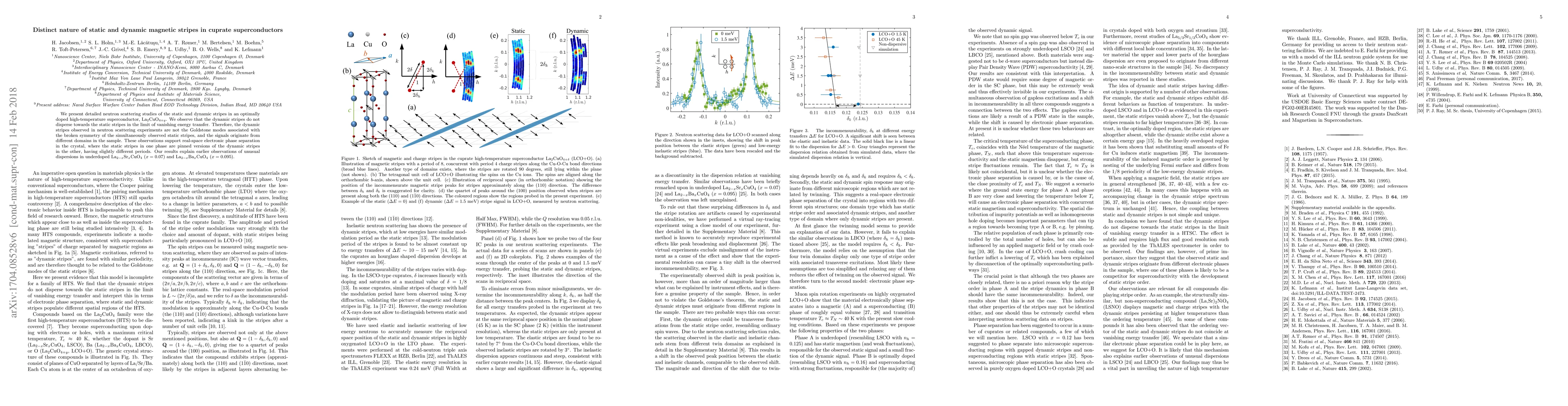 This paper reveals that static and dynamic magnetic stripes in cuprate superconductors, specifically La$_2$CuO$_{4+y}$, are distinct phenomena, with dynamic stripes not dispersing towards static ones. The findings suggest these stripes originate from different domains, possibly related by structural twinning or different phases, which helps explain unusual dispersions in underdoped La$_{2-x}$Sr$_x$CuO$_{4}$ and La$_{2-x}$Ba$_x$CuO$_{4}$.