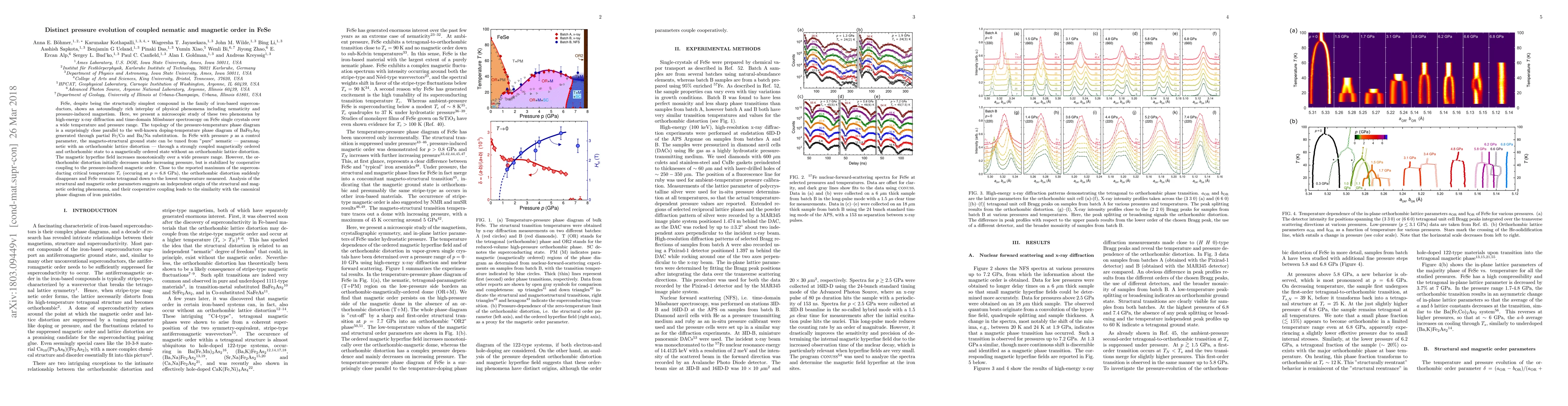 This study investigates the interplay between nematicity and magnetic order in FeSe under varying pressure and temperature, revealing a complex phase diagram. The research shows that pressure can tune FeSe from a nematic-paramagnetic state to a magnetically ordered state, with the magnetic hyperfine field increasing monotonically while the orthorhombic distortion is stabilized by coupling to magnetic order, ultimately disappearing near the maximum superconducting critical temperature.
