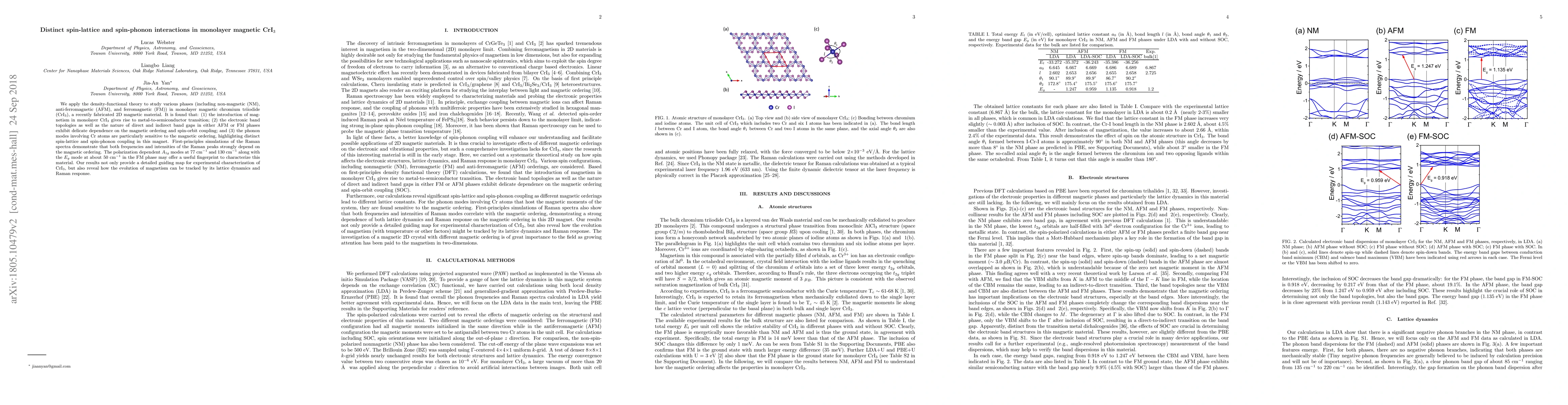 The paper presents detailed DFT simulations of the electronic and lattice dynamics in monolayer CrI3 across different magnetic phases, uncovering distinct spin-lattice and spin-phonon interactions.