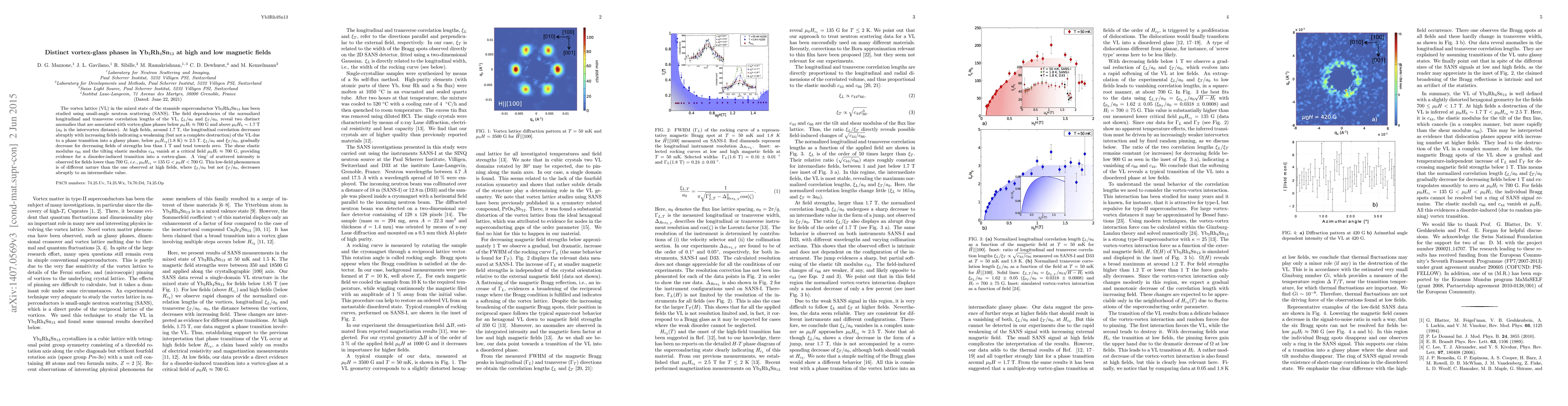 The vortex lattice (VL) in the mixed state of the stannide superconductor Yb$_{3}$Rh$_{4}$Sn$_{13}$ has been studied using small-angle neutron scattering (SANS). The field dependencies of the normalized longitudinal and transverse correlation lengths of the VL, $\xi_L/a_0$ and $\xi_T /a_0$, reveal two distinct anomalies that are associated with vortex-glass phases below $\mu_0H_l$~$\approx$~700~G and above $\mu_{0}H_h$~$\sim$~1.7~T ($a_0$ is the intervortex distance). At high fields, around 1.7~T, the longitudinal correlation decreases abruptly with increasing fields indicating a weakening (but not a complete destruction) of the VL due to a phase transition into a glassy phase, below $\mu_{0}H_{c_2}$(1.8 K)~$\approx$~2.5~T. $\xi_L/a_0$ and $\xi_T /a_0$, gradually decrease for decreasing fields of strengths less than 1~T and tend towards zero. The shear elastic modulus $c_{66}$ and the tilting elastic modulus $c_{44}$ vanish at a critical field $\mu_0H_l$~$\approx$~700~G, providing evidence for a disorder-induced transition into a vortex-glass. A 'ring' of scattered intensity is observed for fields lower than 700~G, $i.e.$, $\mu_{0}H_{c_1}$~=~135~G~$<$~$\mu_{0}H$~$<$~700~G. This low-field phenomenon is of different nature than the one observed at high fields, where $\xi_L/a_0$ but not $\xi_T/a_0$, decreases abruptly to an intermediate value.