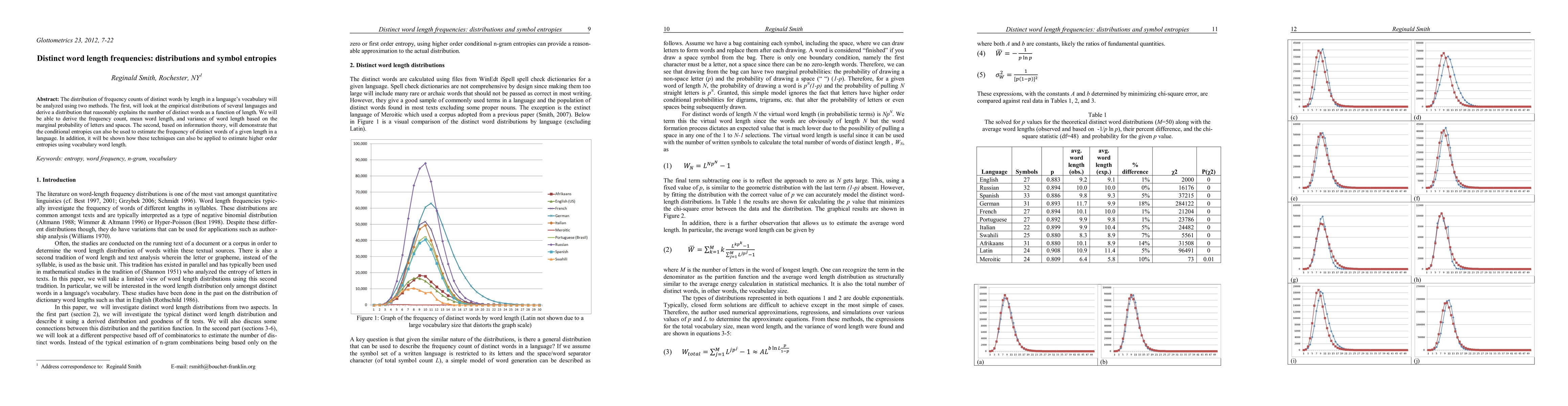 This paper analyzes the distribution of distinct word lengths in various languages, deriving frequency counts and mean word length from empirical data and marginal probabilities. It also employs information theory to estimate word frequency using conditional entropies and higher order entropies based on word length.