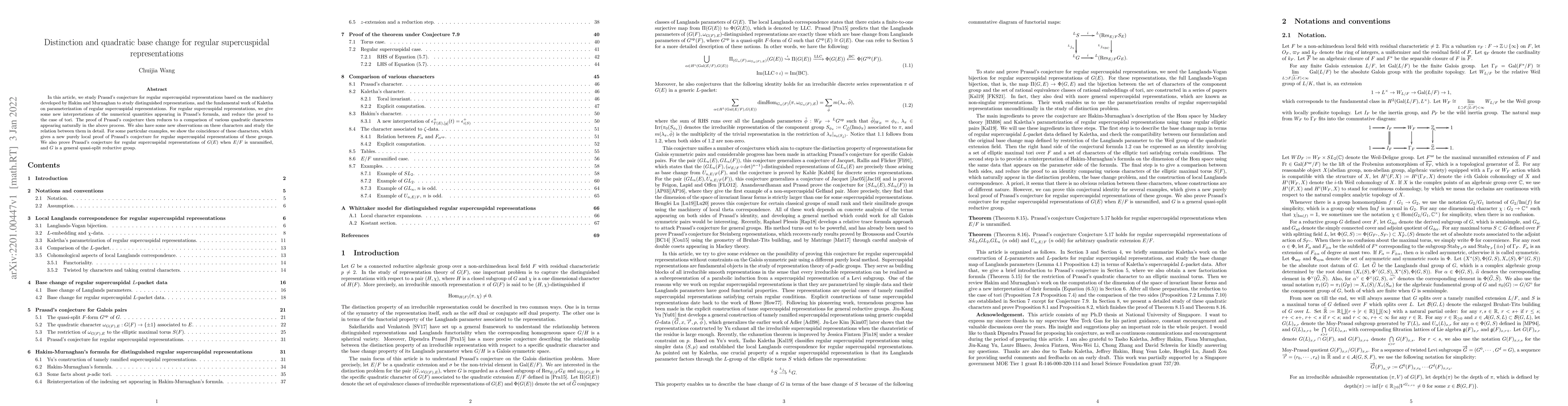 This paper explores Prasad's conjecture for regular supercuspidal representations using tools from distinguished representations and quadratic base change. It provides new interpretations and proves the conjecture for specific cases by comparing quadratic characters and examining their relations.