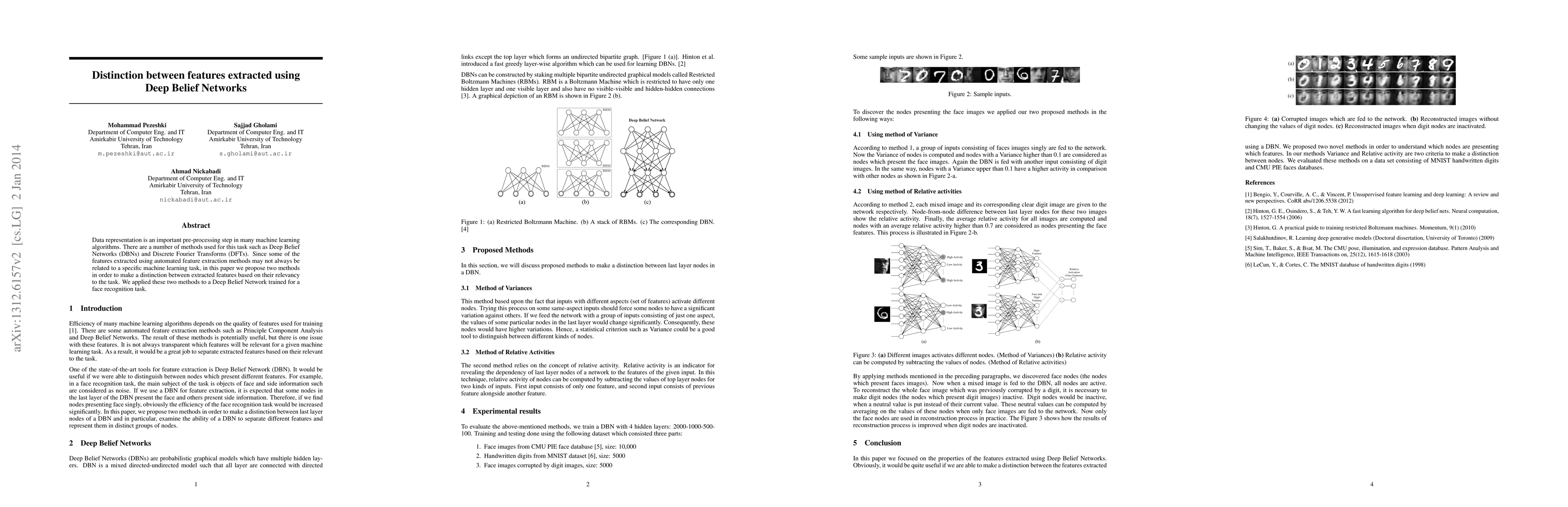 Data representation is an important pre-processing step in many machine learning algorithms. There are a number of methods used for this task such as Deep Belief Networks (DBNs) and Discrete Fourier Transforms (DFTs). Since some of the features extracted using automated feature extraction methods may not always be related to a specific machine learning task, in this paper we propose two methods in order to make a distinction between extracted features based on their relevancy to the task. We applied these two methods to a Deep Belief Network trained for a face recognition task.