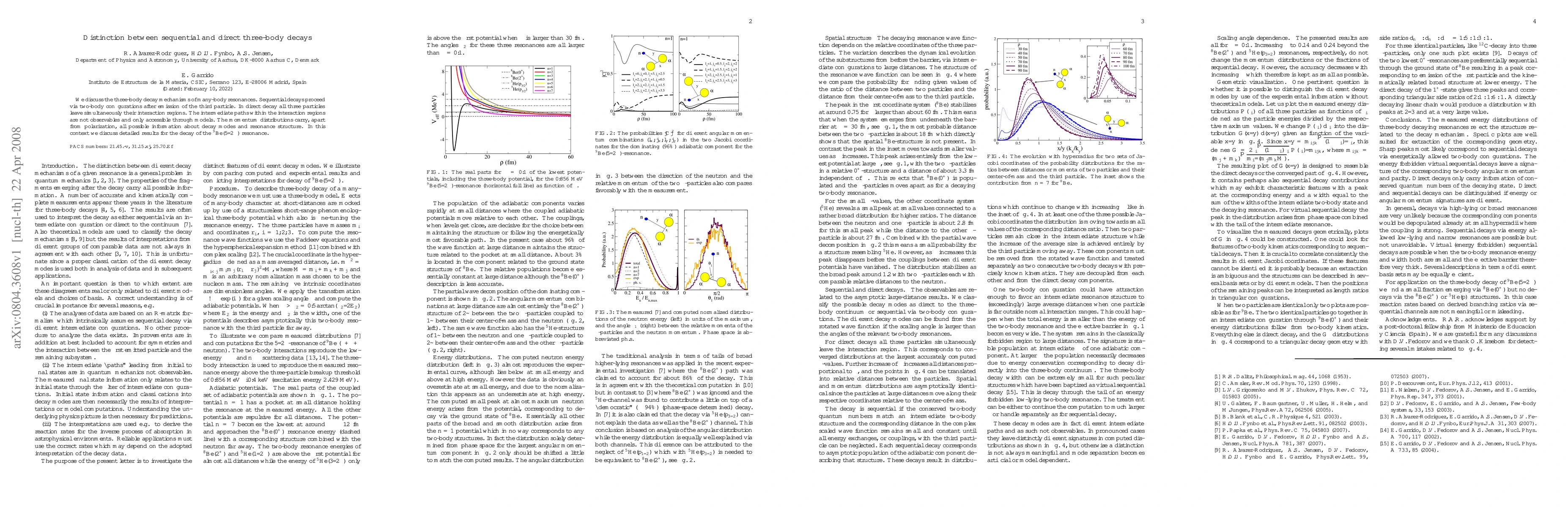 This paper distinguishes between sequential and direct three-body decay mechanisms of many-body resonances, highlighting that sequential decays involve intermediate two-body processes while direct decays occur simultaneously. The study focuses on the $^{9}$Be($5/2^-$) resonance, using momentum distributions to infer decay modes and resonance structure.