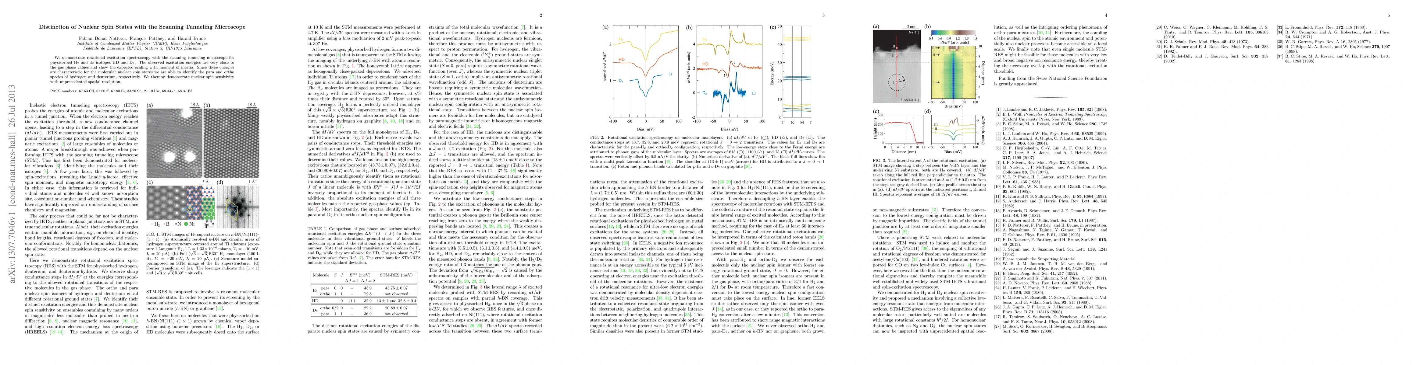 This paper demonstrates nuclear spin state distinction using scanning tunneling microscopy for hydrogen and its isotopes, revealing para and ortho species with high spatial resolution. The observed rotational excitation energies closely match gas phase values, showcasing the method's nuclear spin sensitivity.