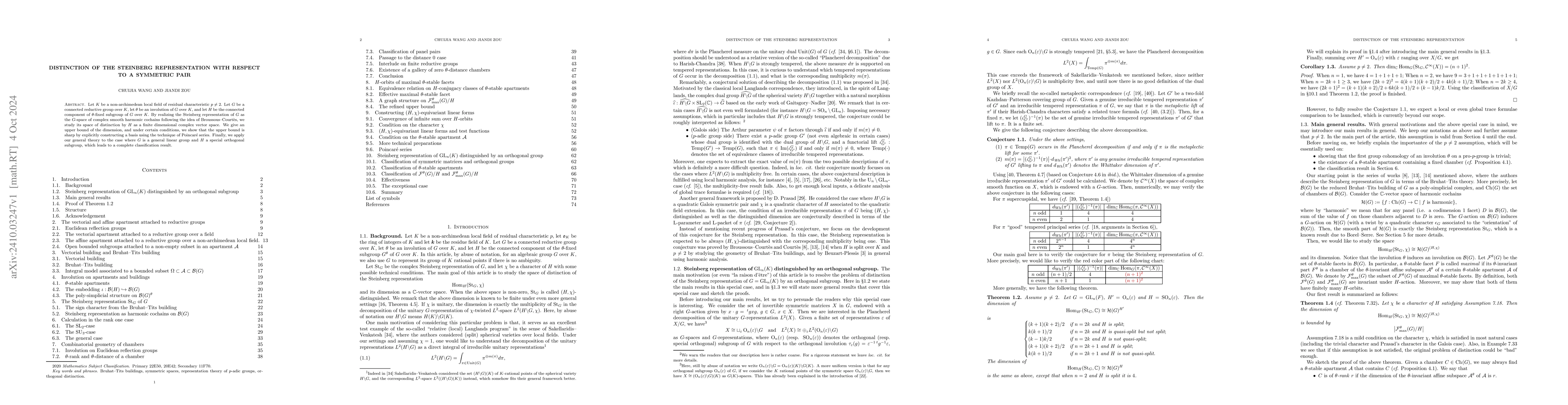 Let $K$ be a non-archimedean local field of residual characteristic $p\neq 2$. Let $G$ be a connected reductive group over $K$, let $\theta$ be an involution of $G$ over $K$, and let $H$ be the connected component of $\theta$-fixed subgroup of $G$ over $K$. By realizing the Steinberg representation of $G$ as the $G$-space of complex smooth harmonic cochains following the idea of Broussous--Court\`es, we study its space of distinction by $H$ as a finite dimensional complex vector space. We give an upper bound of the dimension, and under certain conditions, we show that the upper bound is sharp by explicitly constructing a basis using the technique of Poincar\'e series. Finally, we apply our general theory to the case where $G$ is a general linear group and $H$ a special orthogonal subgroup, which leads to a complete classification result.