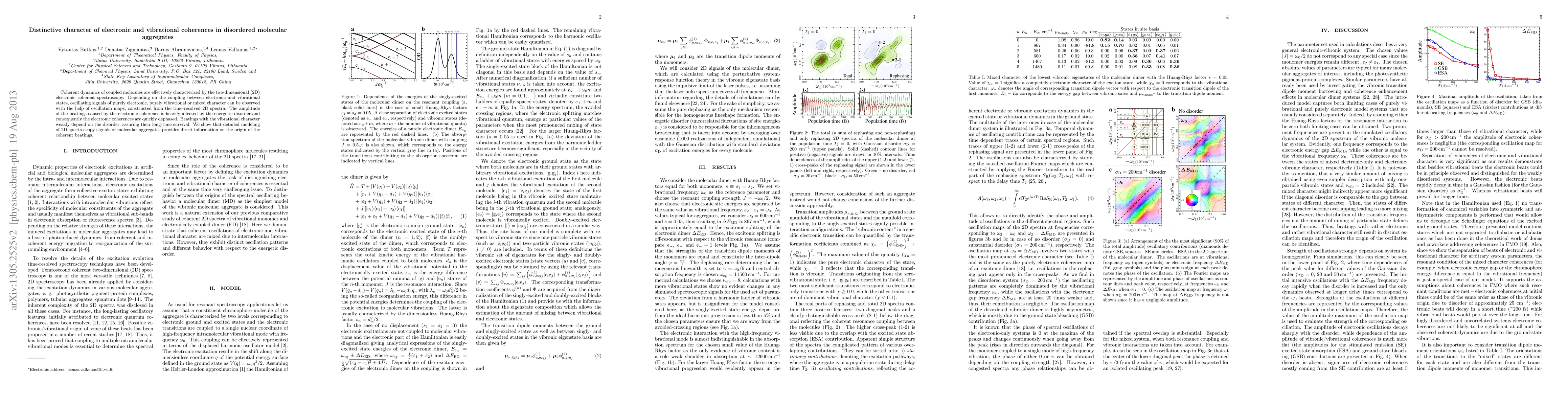 This paper explores the coherent dynamics in disordered molecular aggregates using 2D electronic spectroscopy, distinguishing between electronic and vibrational coherences. It reveals that electronic coherences are rapidly dephased by energetic disorder, while vibrational coherences persist longer, providing insights into the nature of coherent beatings in mixed systems.