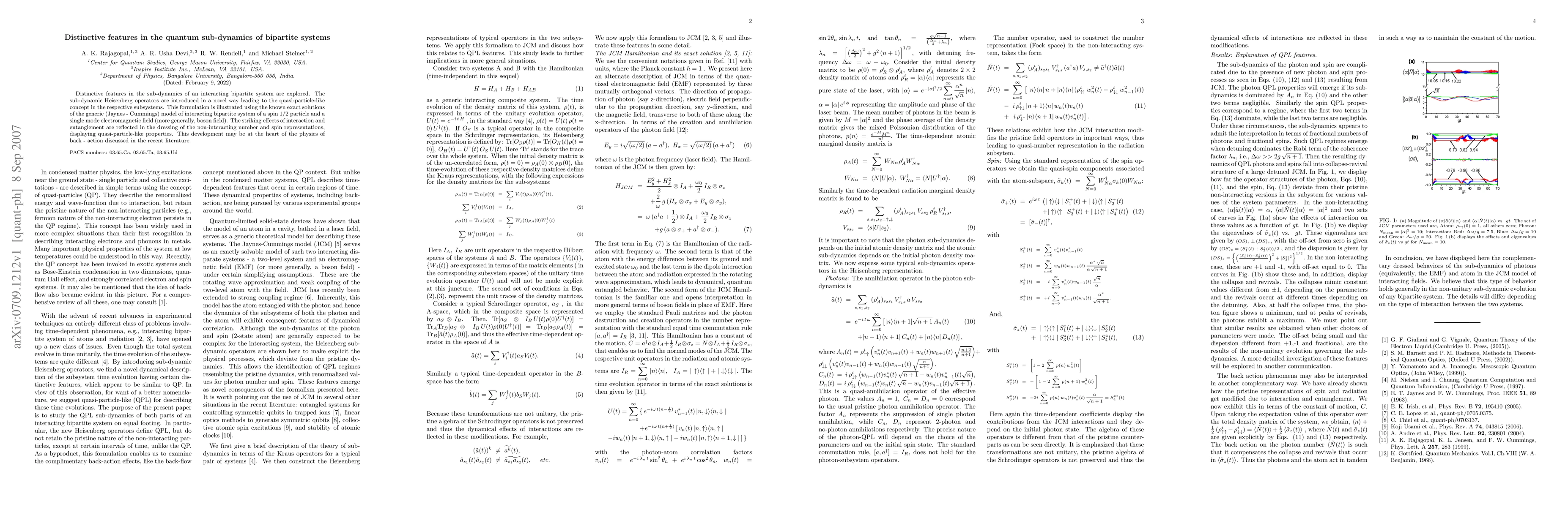 This paper explores the unique quantum sub-dynamics in interacting bipartite systems, introducing novel sub-dynamic Heisenberg operators that reveal quasi-particle-like behavior. The Jaynes-Cummings model illustrates the effects of interaction and entanglement, highlighting the dressing of non-interacting representations.