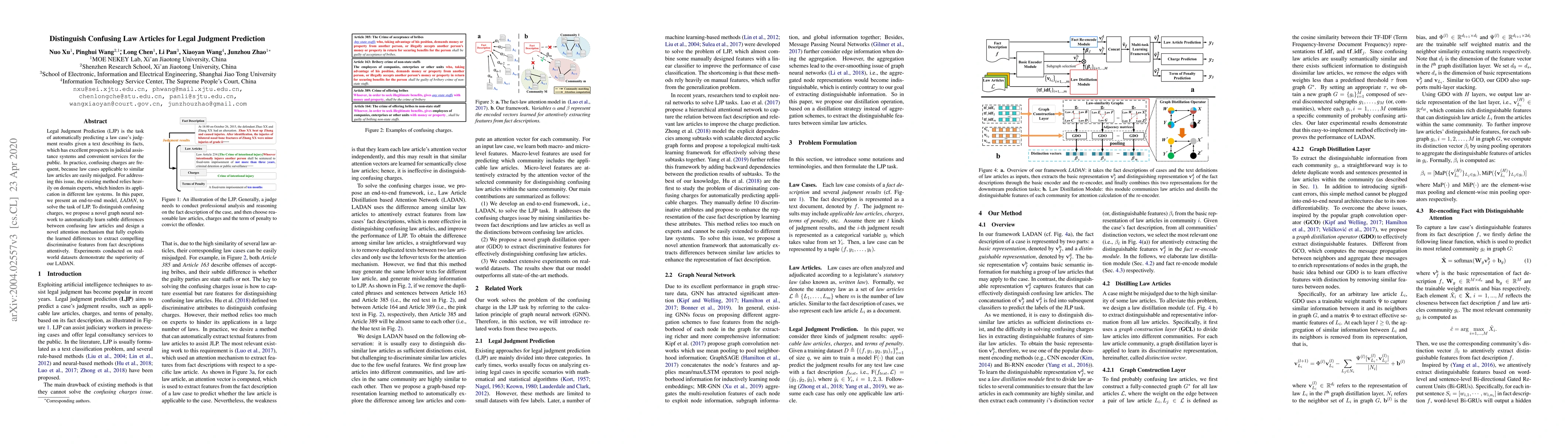 This paper proposes LADAN, an end-to-end model for Legal Judgment Prediction that uses a graph neural network to distinguish confusing law articles and an attention mechanism to extract discriminative features, achieving superior performance on real-world datasets. The approach aims to reduce reliance on domain experts for distinguishing similar legal texts.