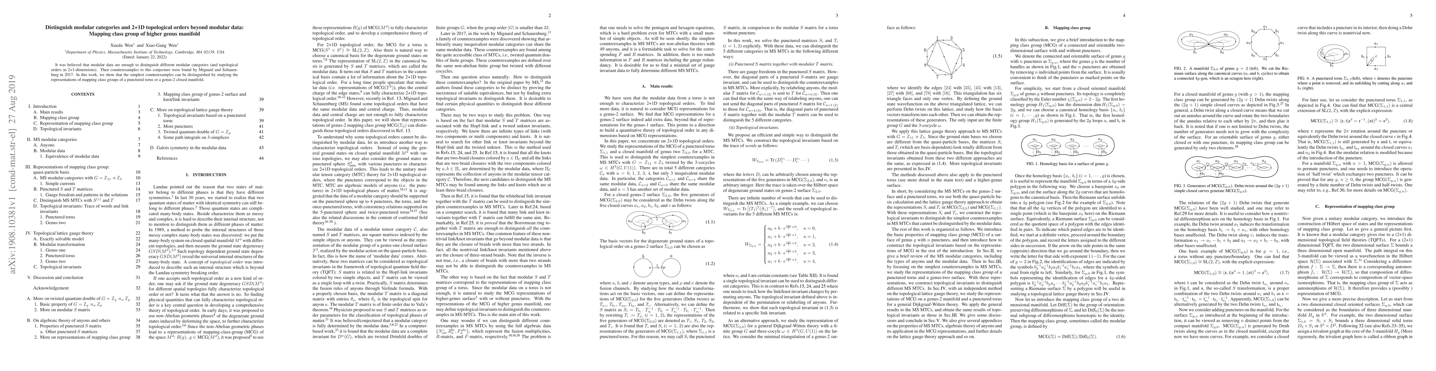 This paper challenges the notion that modular data alone distinguish modular categories, presenting evidence from Mignard and Schauenburg that counterexamples exist. The authors propose using representations of mapping class groups of higher genus manifolds to differentiate these counterexamples.