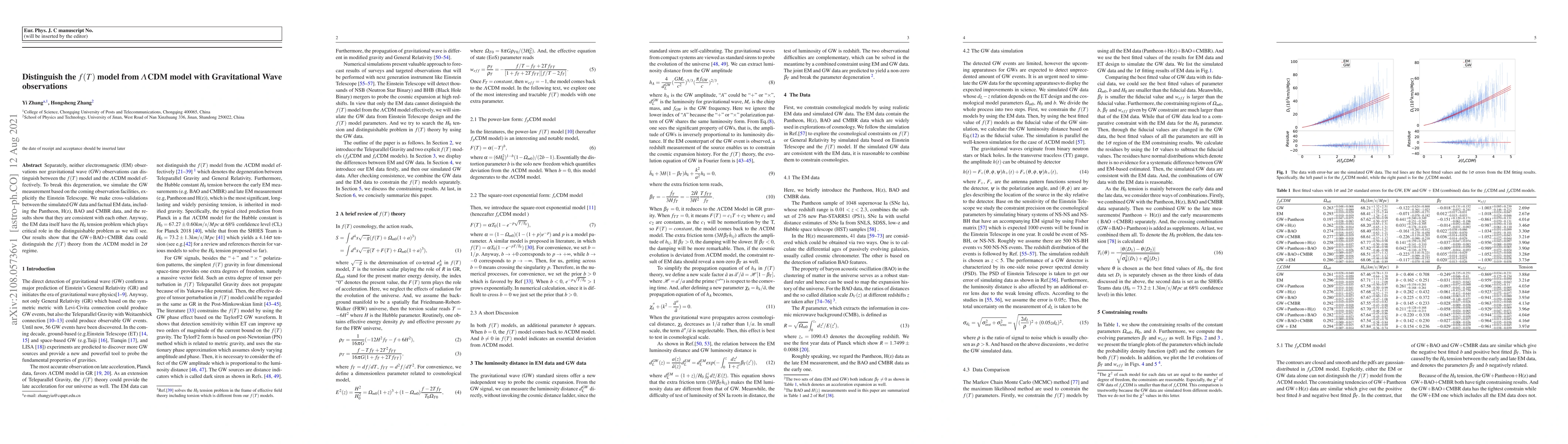 Gravitational wave observations can distinguish between the $f(T)$ model and the $ ext{LCDM}$ model at a 2 ext{ extsigma} confidence level, resolving a degeneracy with electromagnetic data.