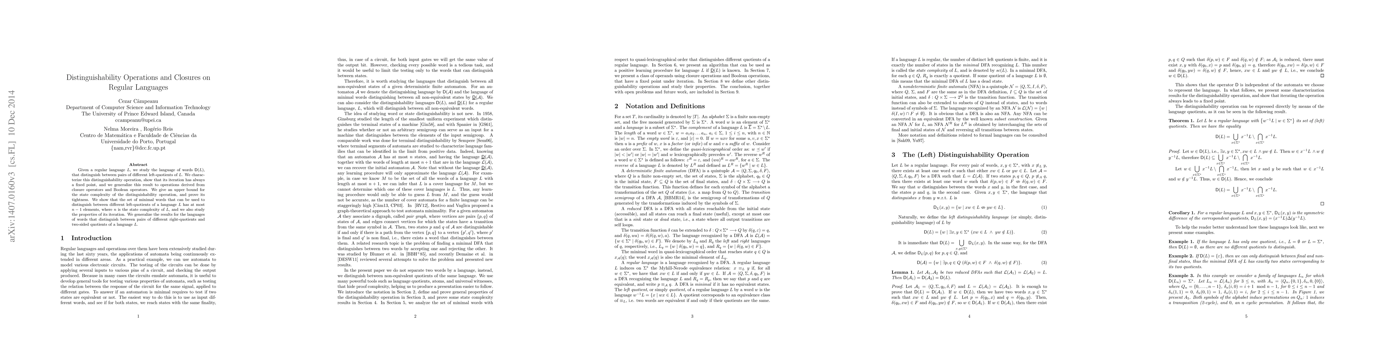 Researchers study a language operation that distinguishes between pairs of different left-quotients of regular languages, finding a bound on its state complexity and generalizing the result to other operations.