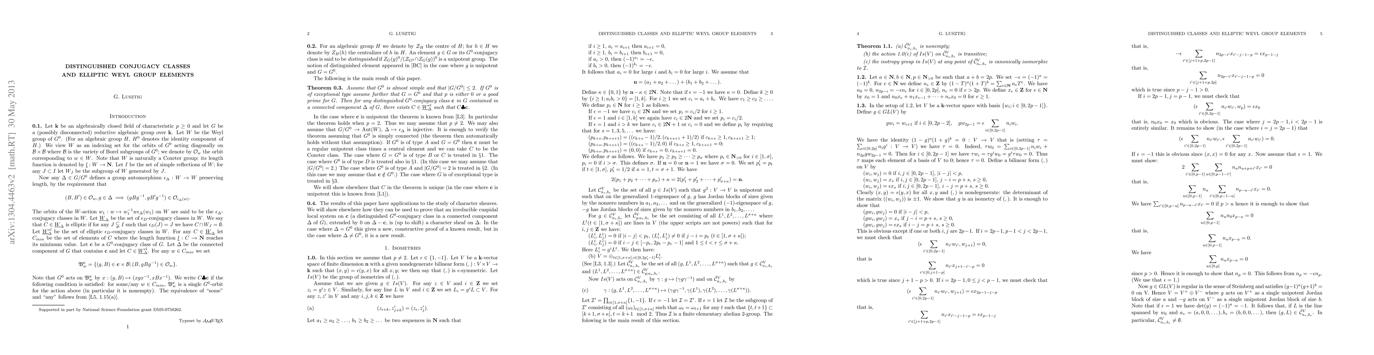 This research establishes a link between distinguished conjugacy classes in a connected component of a reductive group and elliptic conjugacy classes in the Weyl group, proving a homogeneity property associated with this correspondence.