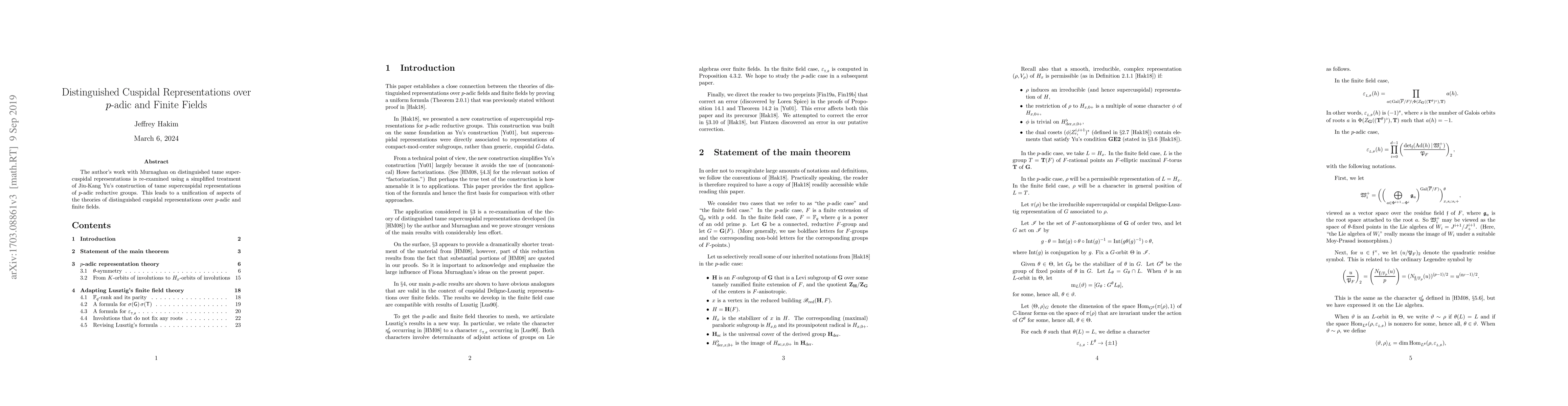The paper re-examines distinguished tame supercuspidal representations, utilizing a simplified approach to Yu's construction, and unifies the theories of distinguished cuspidal representations over $p$-adic and finite fields.
