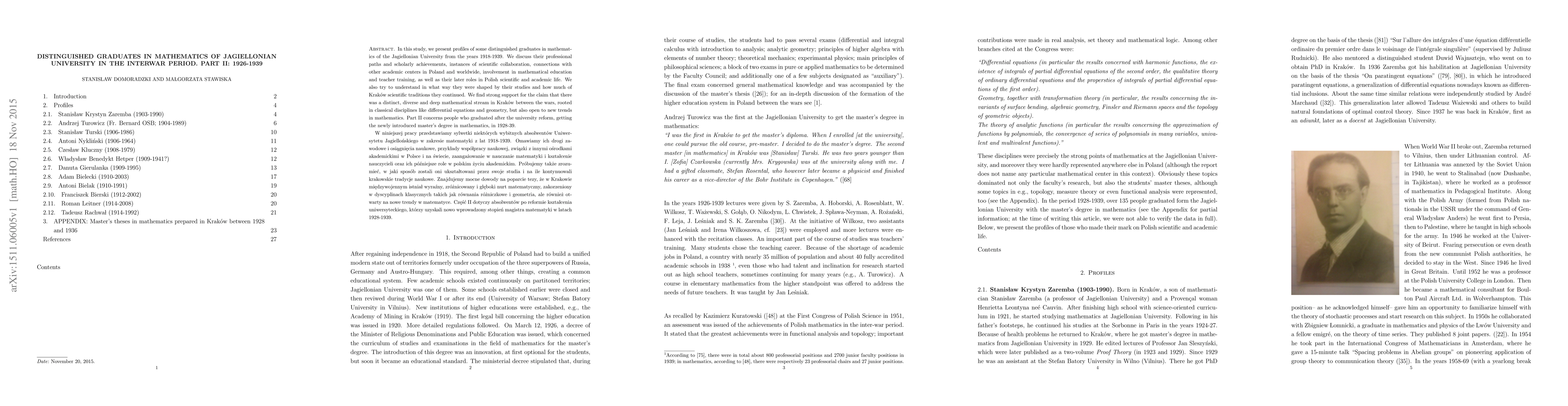This paper profiles distinguished mathematics graduates from Jagiellonian University between 1928-1939, focusing on their professional paths, scholarly achievements, and contributions to mathematical education and scientific collaboration. It highlights the university's distinct mathematical tradition and its openness to new trends.