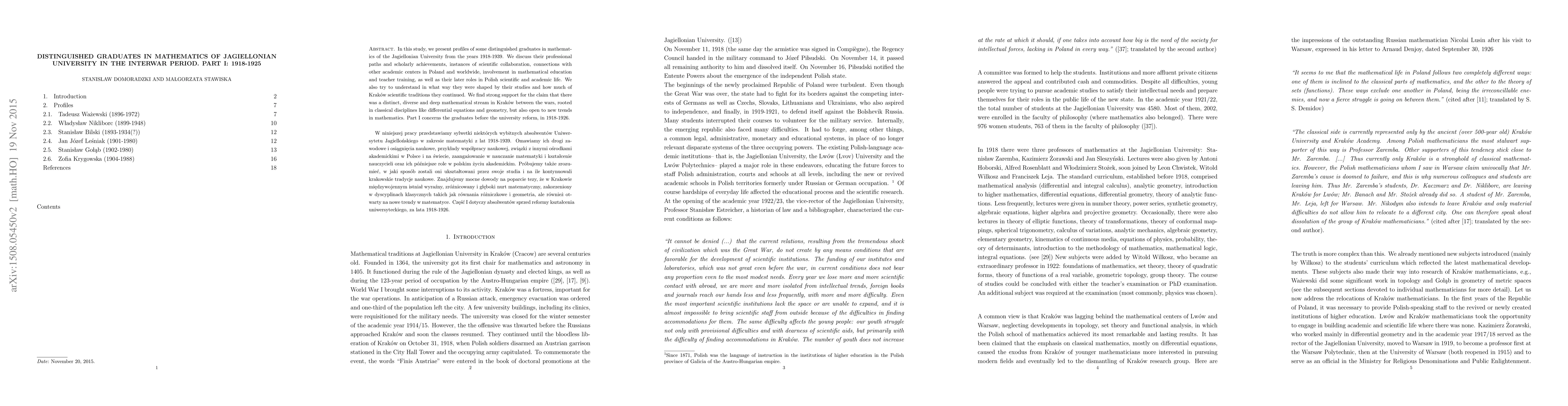 This study profiles distinguished mathematics graduates from Jagiellonian University in Kraków between 1918-1926, highlighting their professional paths, scholarly achievements, and contributions to mathematical education and scientific collaboration. It underscores the university's role in fostering a vibrant mathematical community during the interwar period.