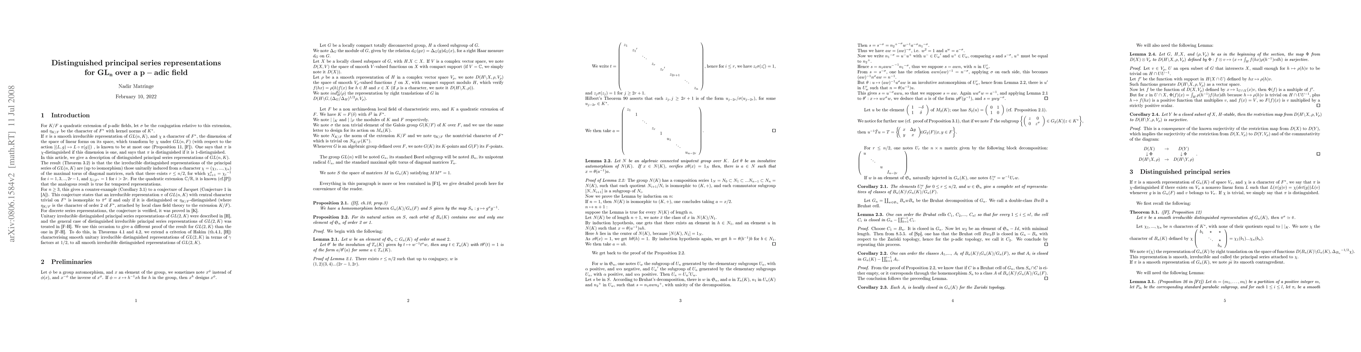 This paper describes the distinguished irreducible principal series representations of the general linear group over a p-adic field, providing a counter-example to Jacquet's conjecture on distinction.