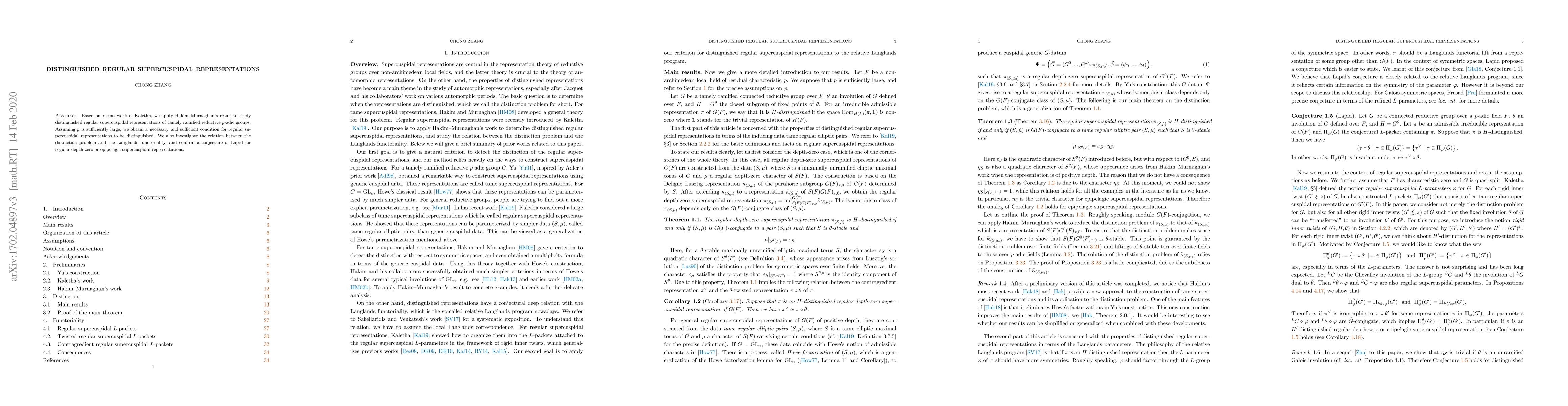 Summary: This paper builds on Kaletha's work to establish a necessary and sufficient condition for distinguished regular supercuspidal representations of tamely ramified reductive $p$-adic groups, confirming Lapid's conjecture for specific cases and exploring the connection to Langlands functoriality.