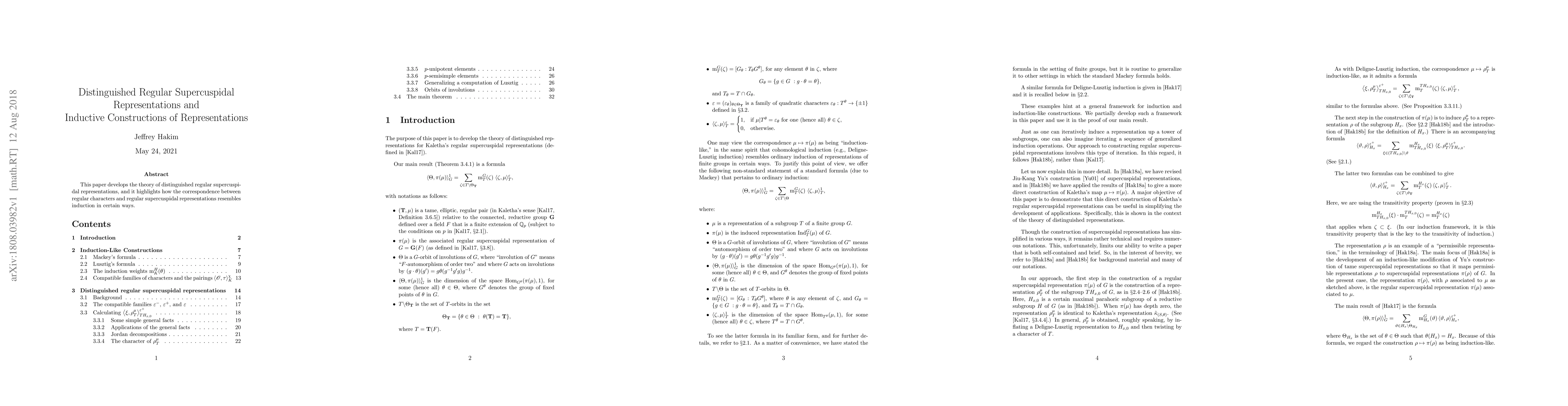 This paper develops the theory of distinguished regular supercuspidal representations, and it highlights how the correspondence between regular characters and regular supercuspidal representations resembles induction in certain ways.