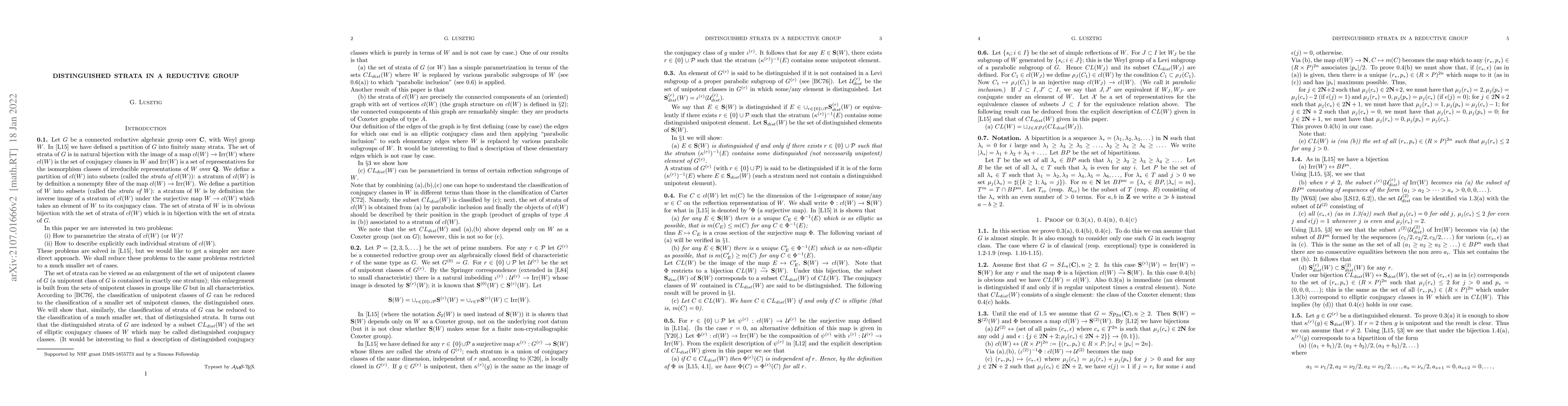 Summary: This paper extends the concept of distinguished unipotent classes to the broader set of strata in a reductive group, introducing and analyzing the strata of a Weyl group within this context.