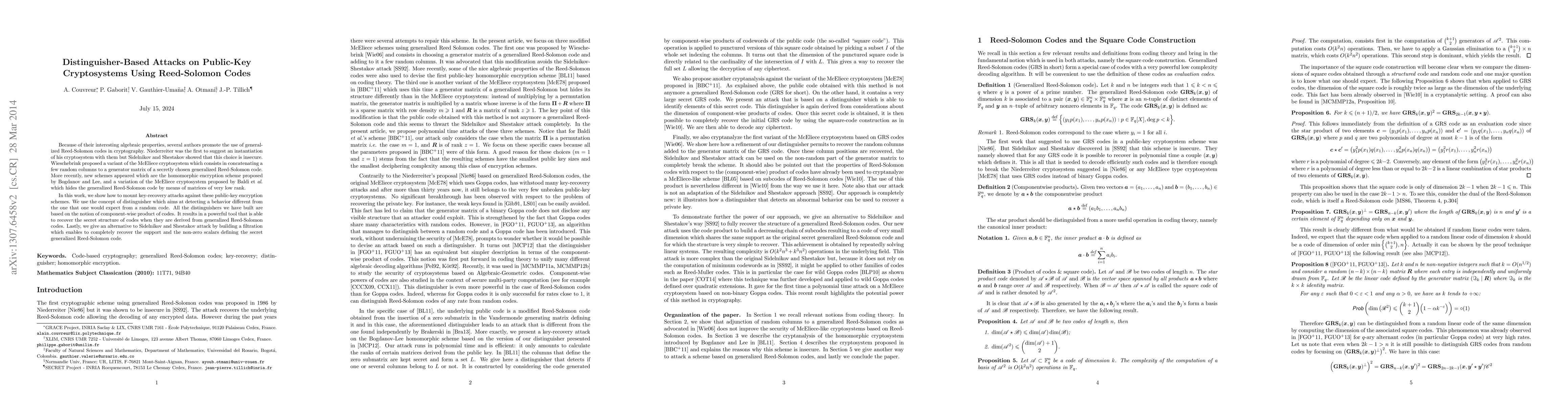 This paper demonstrates key-recovery attacks on public-key cryptosystems based on generalized Reed-Solomon codes, using distinguishers to detect deviations from random code behavior. The attacks leverage the component-wise product of codes and provide a filtration method to fully recover the secret code's structure.