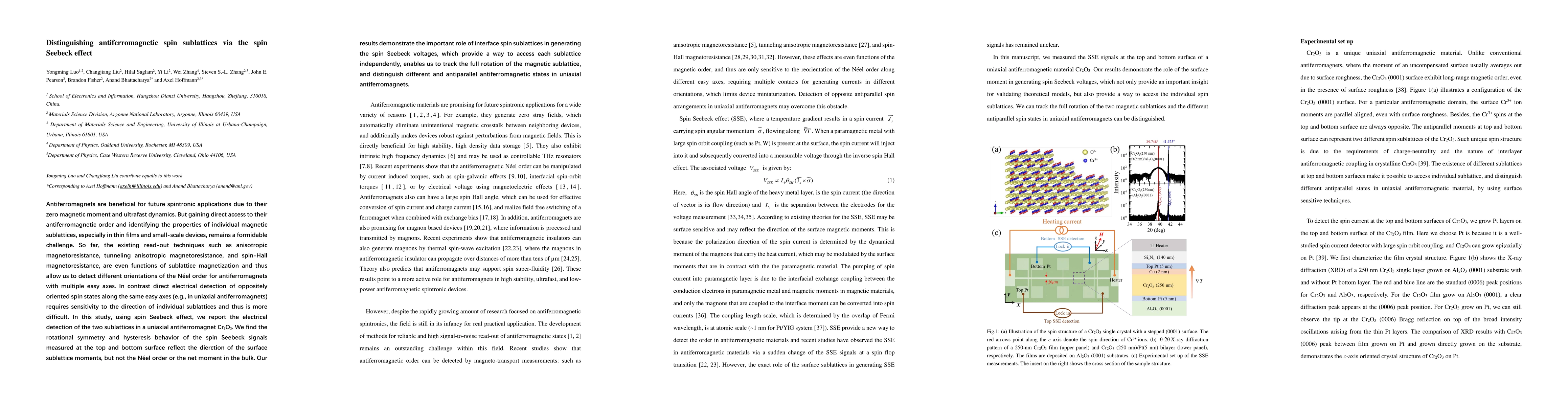 Researchers used the spin Seebeck effect to detect individual sublattices in a uniaxial antiferromagnet, enabling them to distinguish between different states and track full rotations of magnetic sublattices.