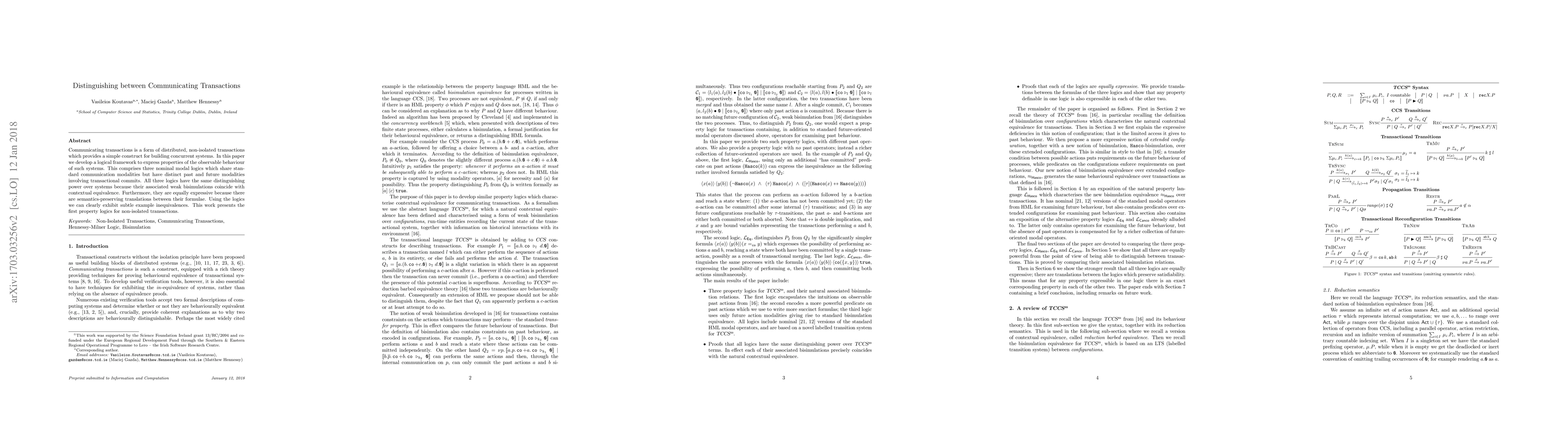 Researchers developed a logical framework to express properties of communicating transactions in concurrent systems, highlighting three equivalent modal logics with distinct past and future modalities.