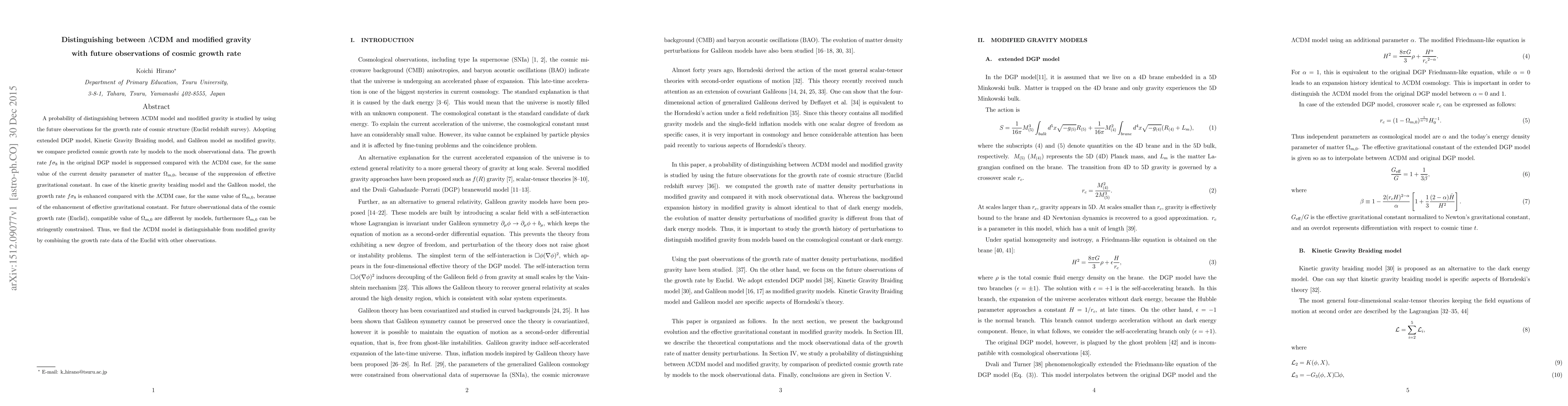 This paper investigates the potential to differentiate between $\Lambda$CDM and modified gravity models using future cosmic growth rate observations from the Euclid survey. It finds that while the DGP model suppresses growth rate, kinetic gravity braiding and Galileon models enhance it, allowing for stringent constraints on $\Omega_{m,0}$ and distinguishing $\Lambda$CDM from modified gravity.